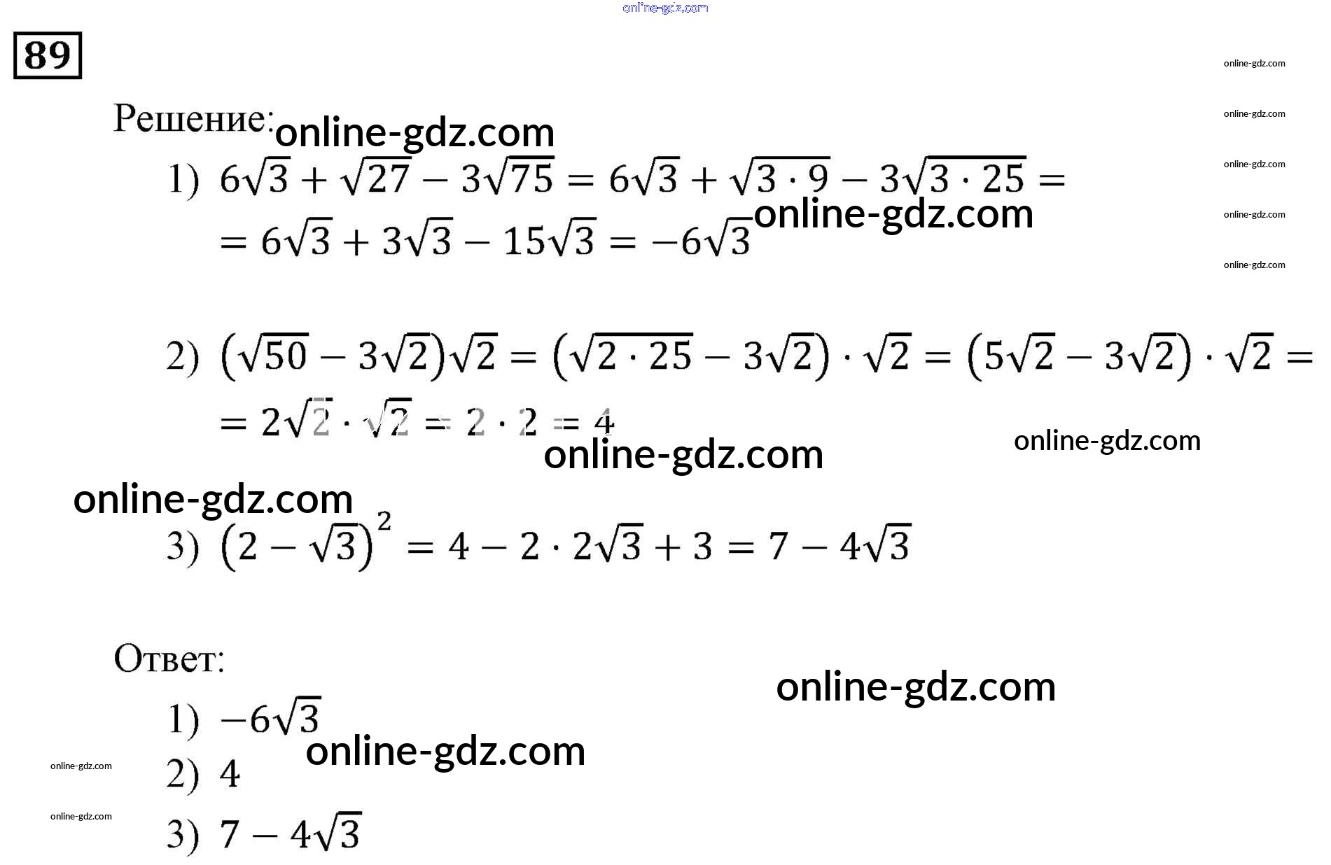 Готовые домашние задания по Алгебре за 9 класс Учебник Мерзляк, Полонский Алгоритм успеха 2016 - Упражнения 89