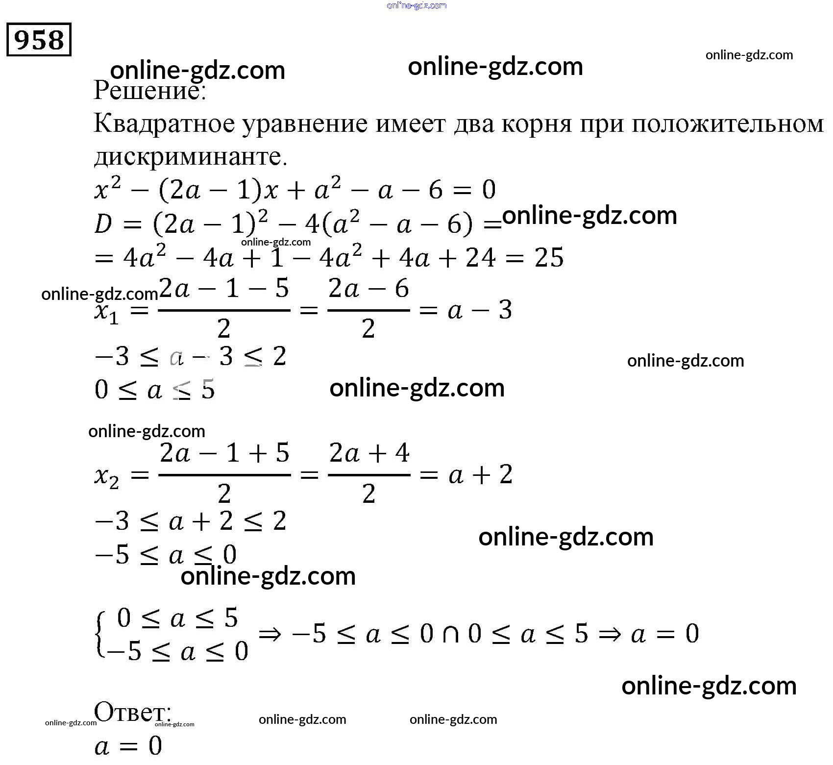 Готовые домашние задания по Алгебре за 9 класс Учебник Мерзляк, Полонский Алгоритм успеха 2016 - Упражнения 958