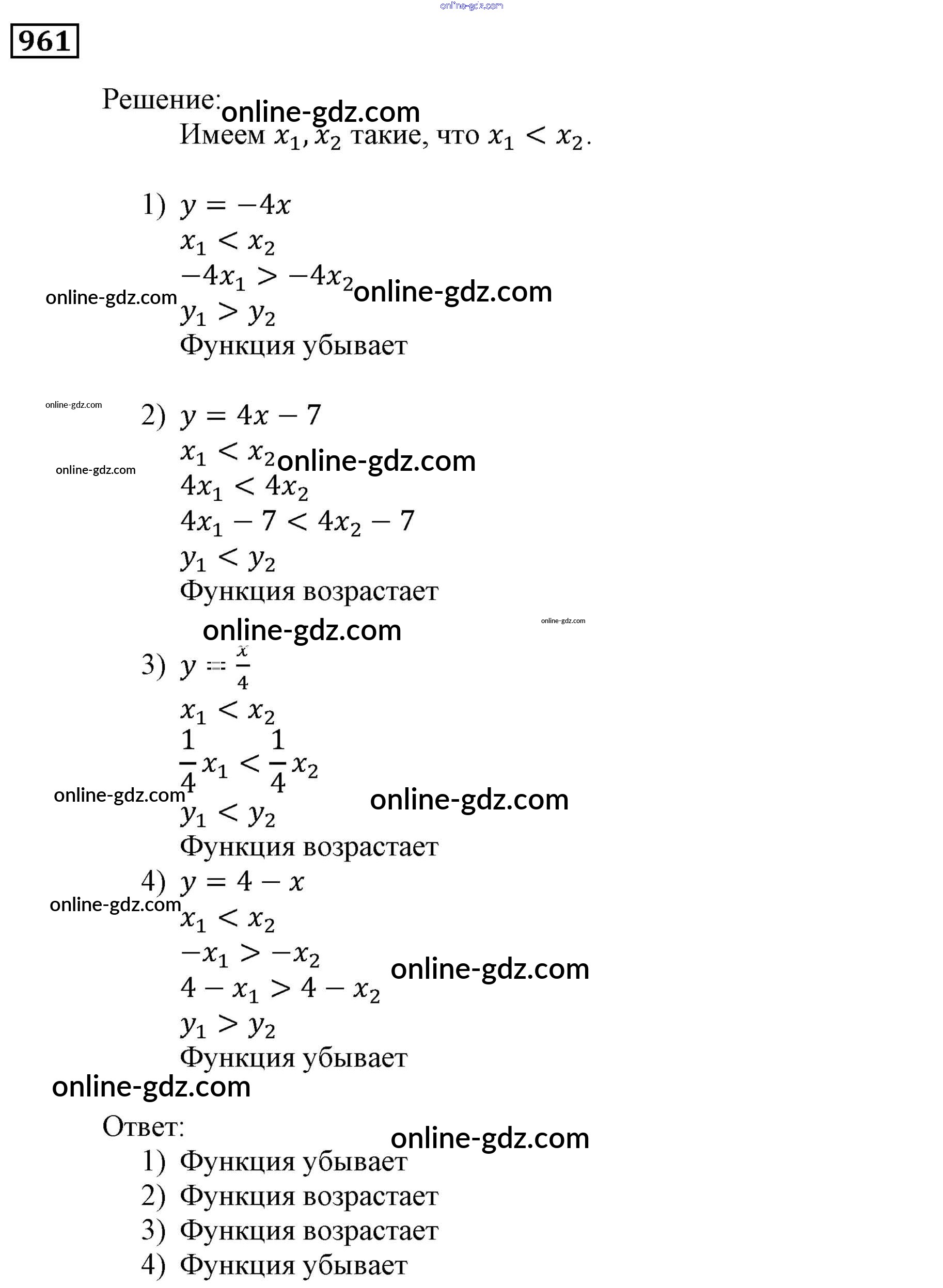 Готовые домашние задания по Алгебре за 9 класс Учебник Мерзляк, Полонский Алгоритм успеха 2016 - Упражнения 961