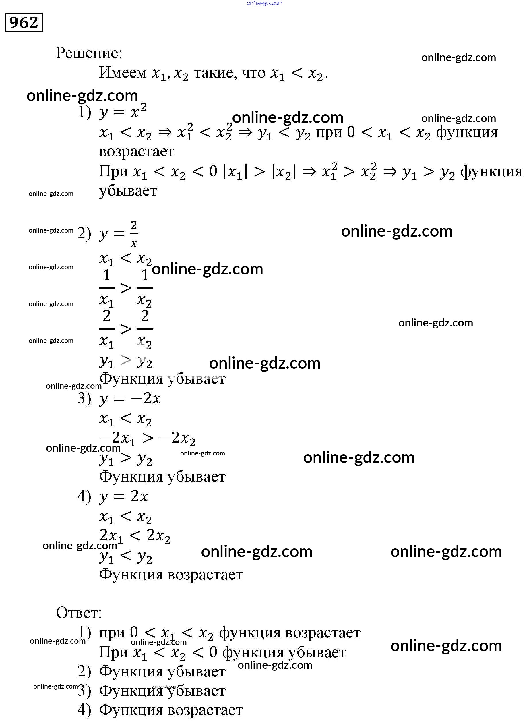 Готовые домашние задания по Алгебре за 9 класс Учебник Мерзляк, Полонский Алгоритм успеха 2016 - Упражнения 962