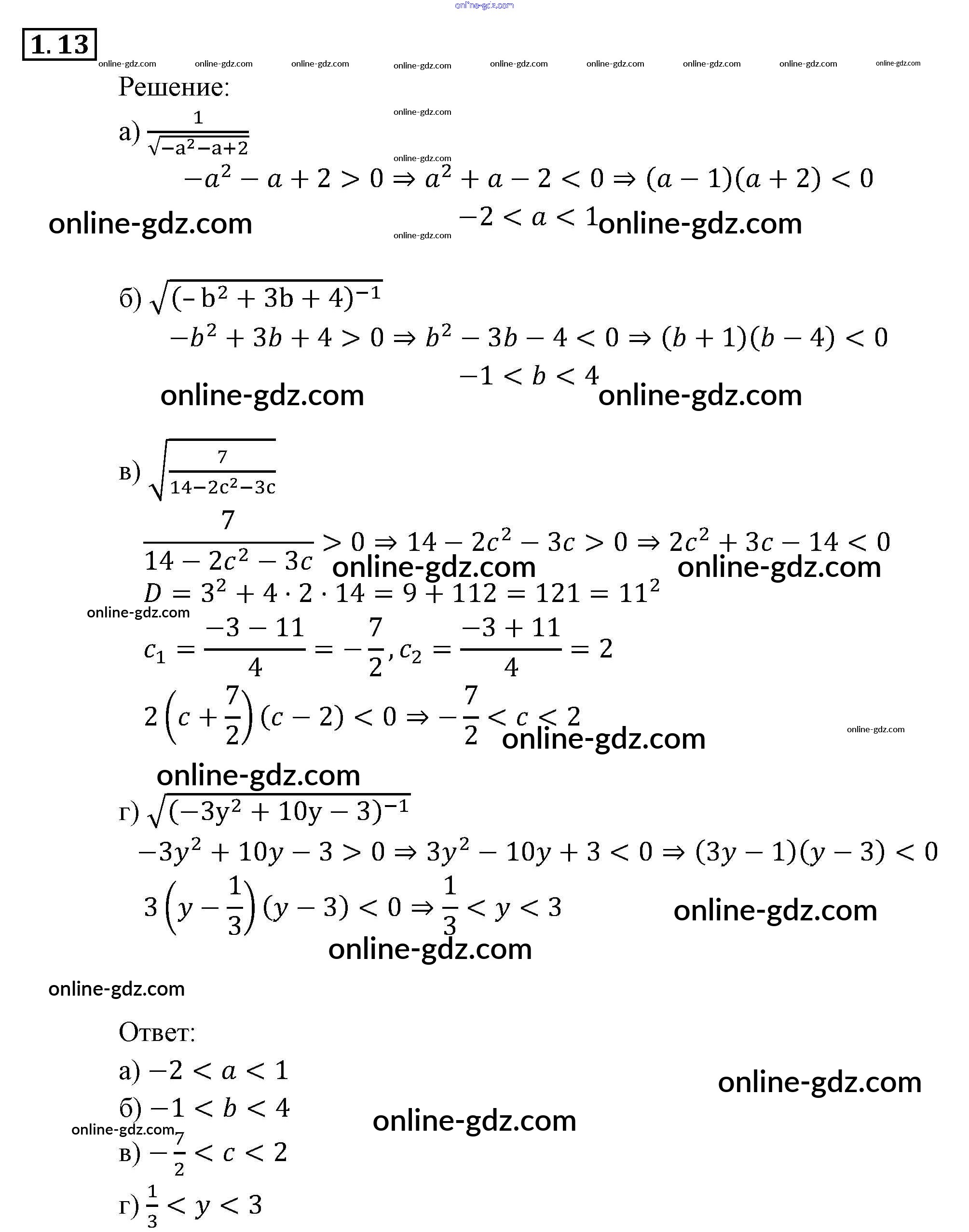 Готовые домашние задания по Алгебре за 9 класс Задачник Мордкович, Александрова 2010 - § 1. Линейные и квадратные неравенства Глава 1. Рациональные неравенства и их системы 1.13