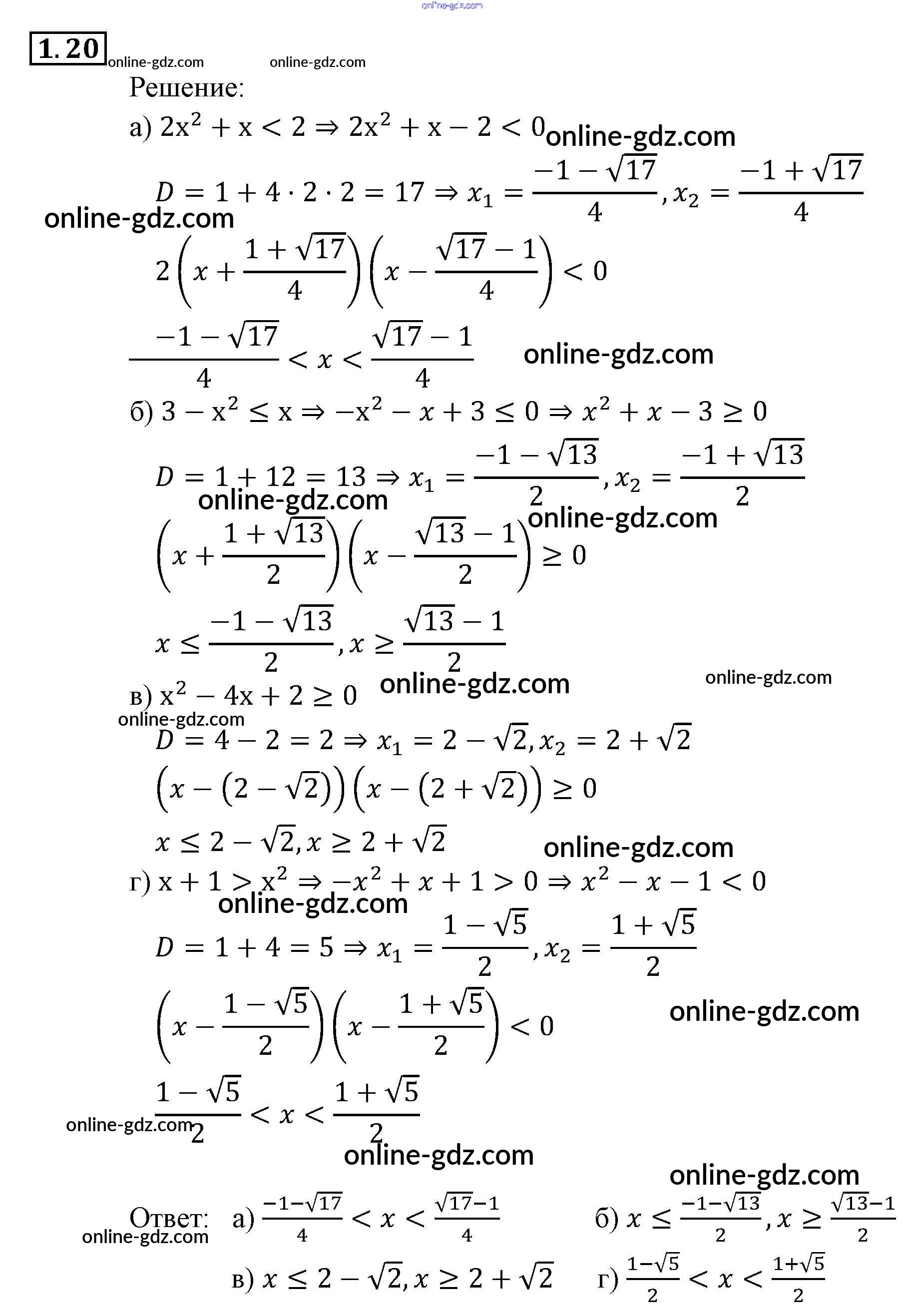 Готовые домашние задания по Алгебре за 9 класс Задачник Мордкович, Александрова 2010 - § 1. Линейные и квадратные неравенства Глава 1. Рациональные неравенства и их системы 1.20