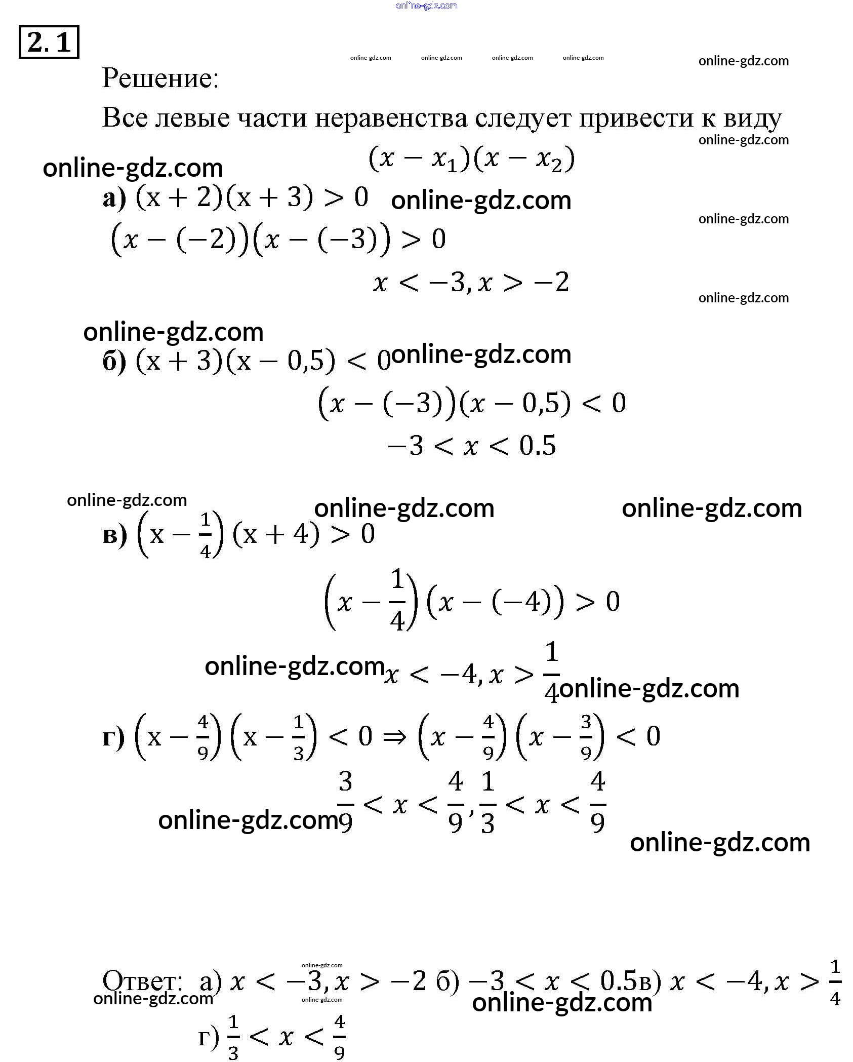 Готовые домашние задания по Алгебре за 9 класс Задачник Мордкович, Александрова 2010 - § 2. Рациональные неравенства Глава 1. Рациональные неравенства и их системы 2.1
