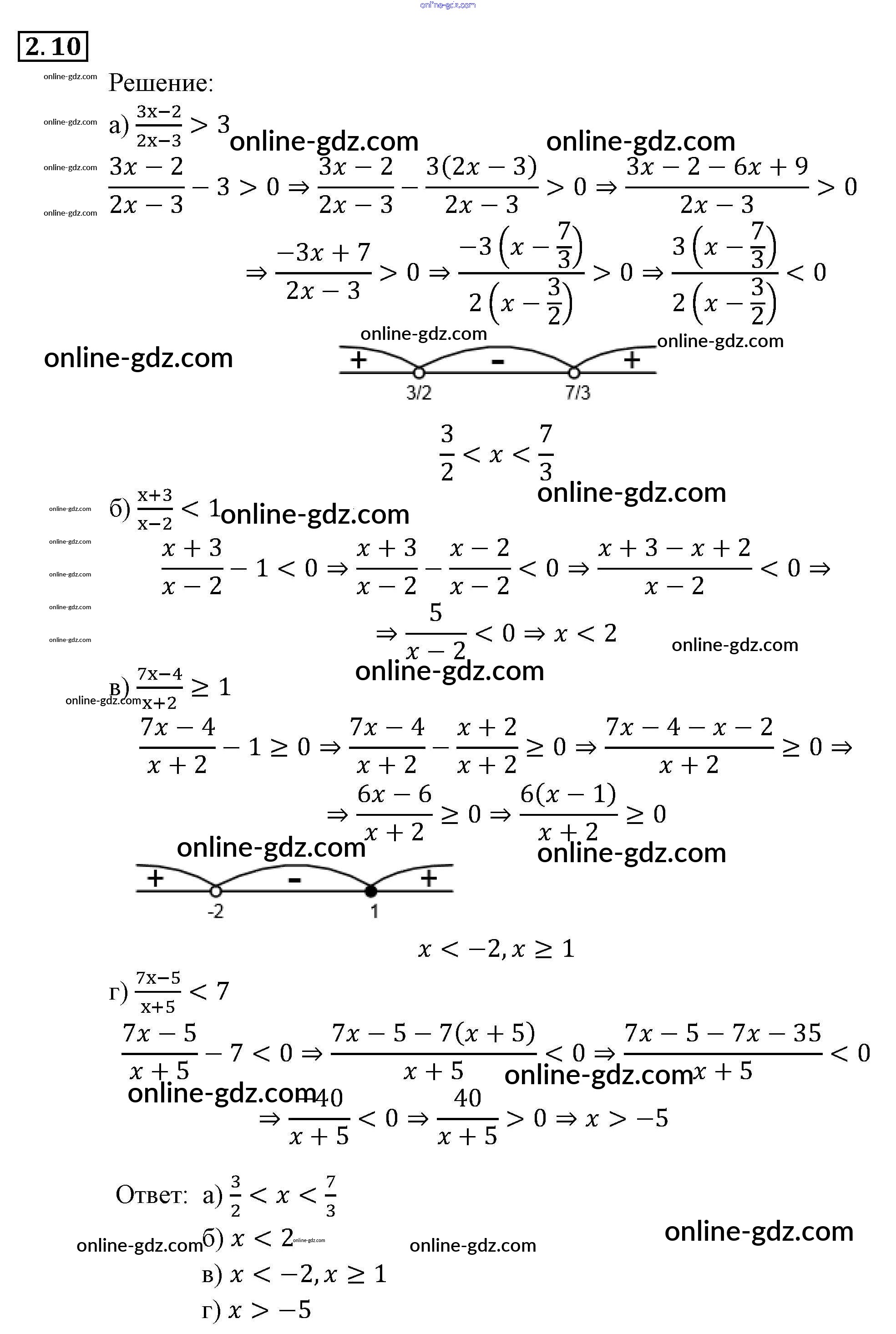 Готовые домашние задания по Алгебре за 9 класс Задачник Мордкович, Александрова 2010 - § 2. Рациональные неравенства Глава 1. Рациональные неравенства и их системы 2.10