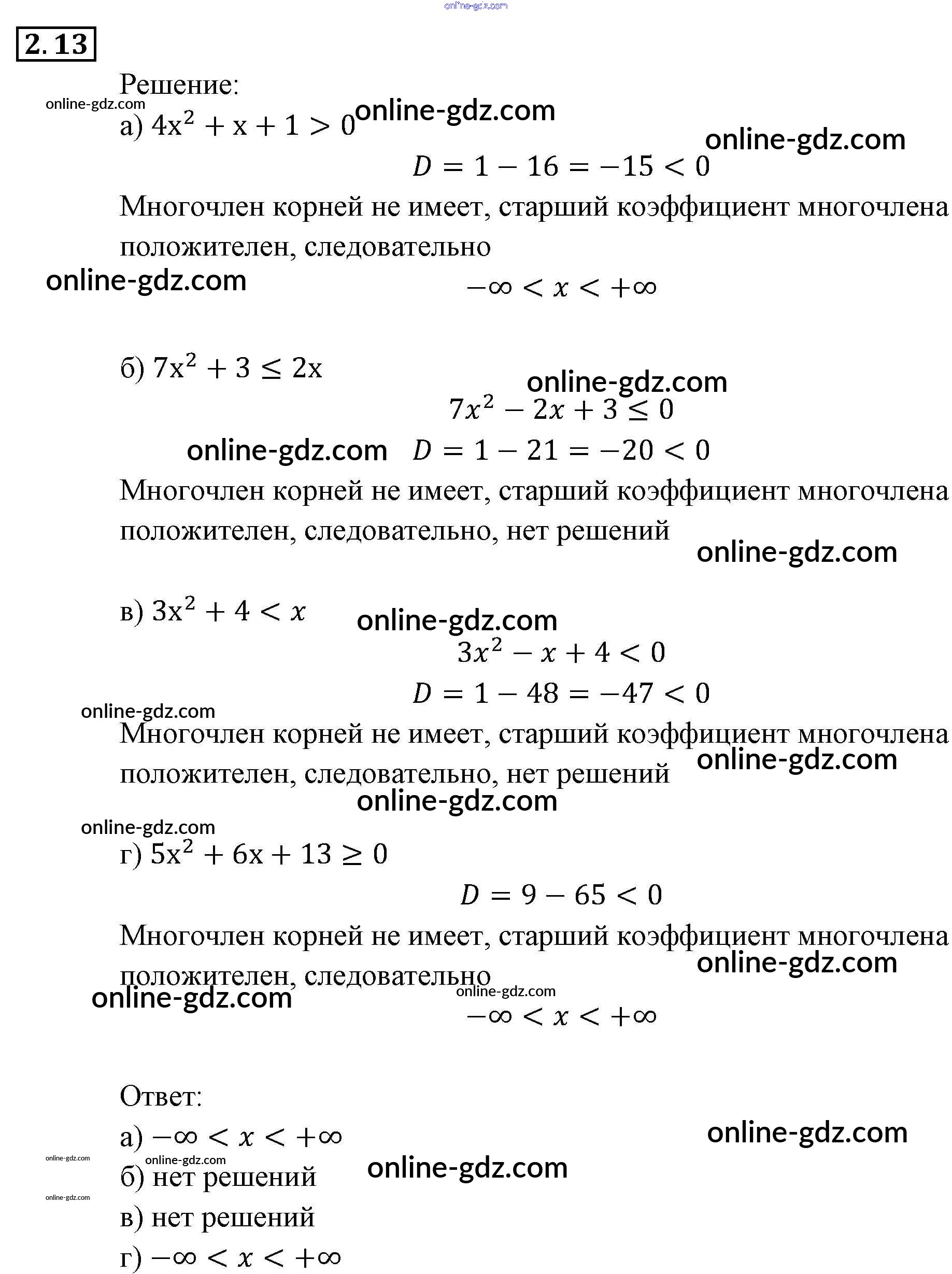 Готовые домашние задания по Алгебре за 9 класс Задачник Мордкович, Александрова 2010 - § 2. Рациональные неравенства Глава 1. Рациональные неравенства и их системы 2.13