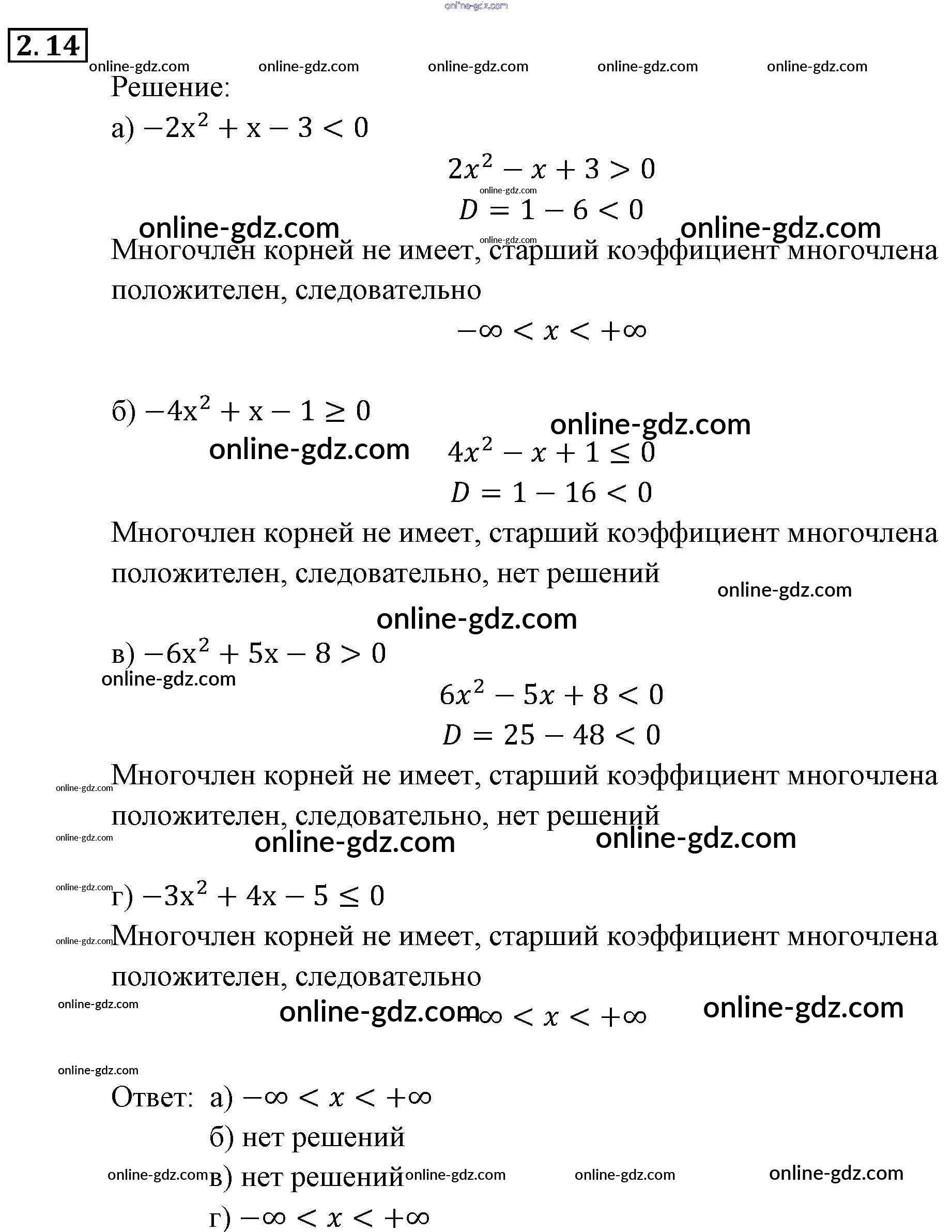 Готовые домашние задания по Алгебре за 9 класс Задачник Мордкович, Александрова 2010 - § 2. Рациональные неравенства Глава 1. Рациональные неравенства и их системы 2.14