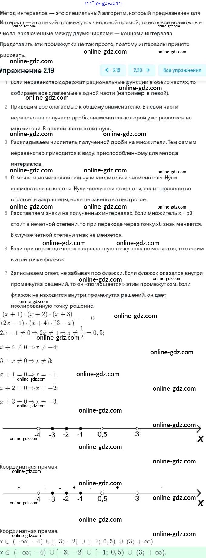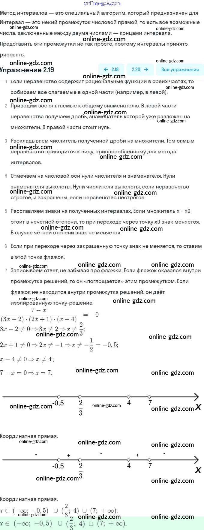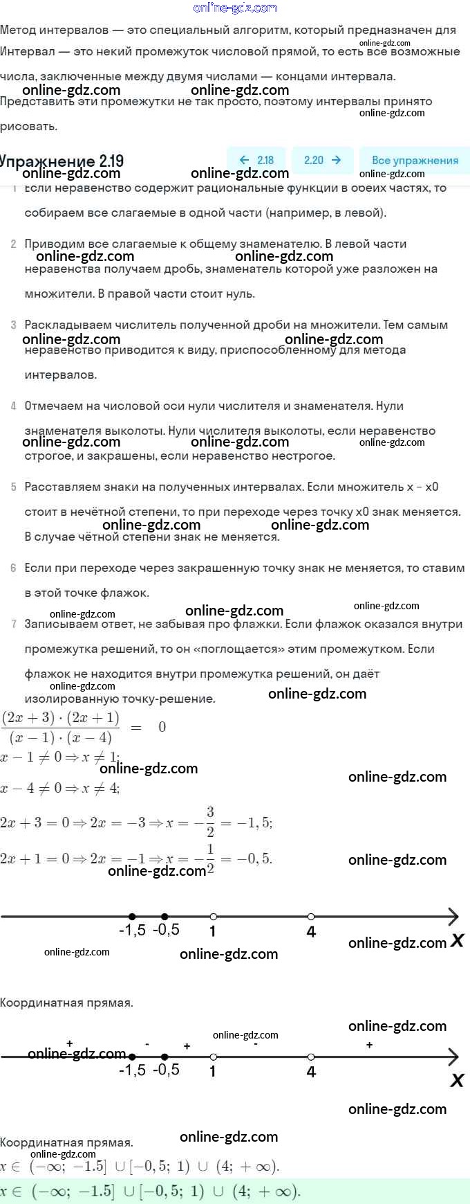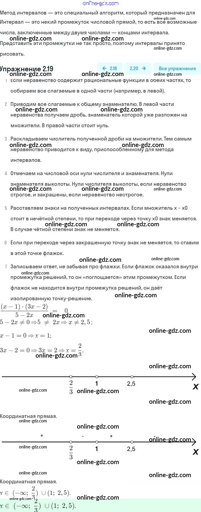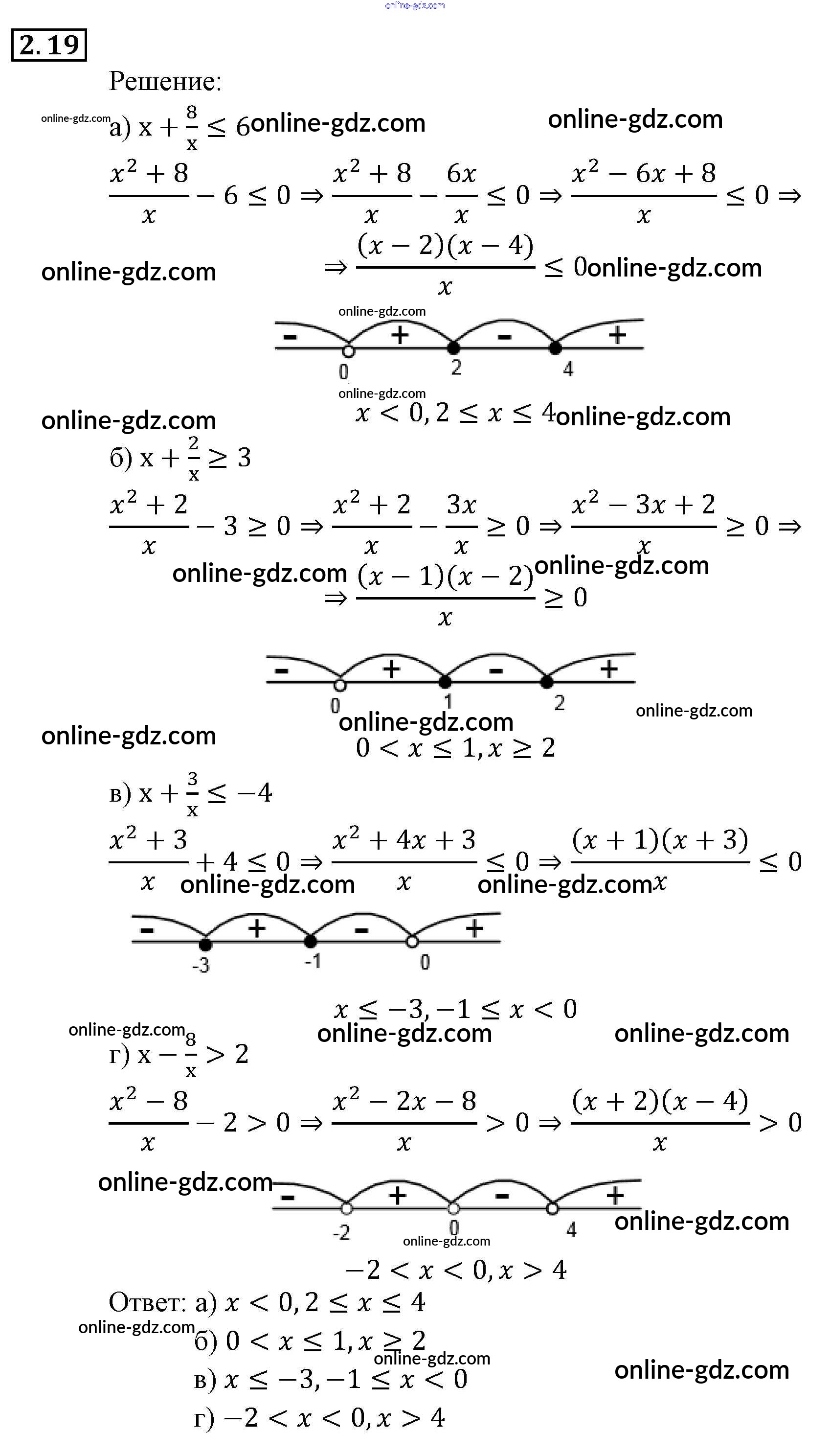 Готовые домашние задания по Алгебре за 9 класс Задачник Мордкович, Александрова 2010 - § 2. Рациональные неравенства Глава 1. Рациональные неравенства и их системы 2.19
