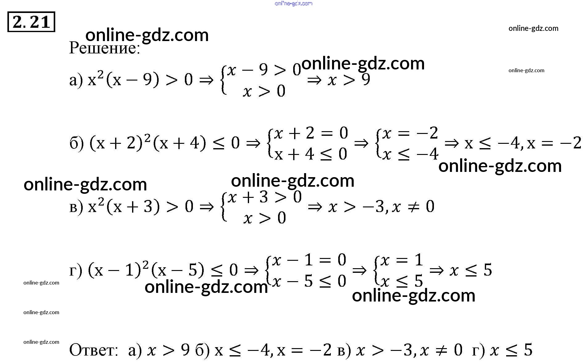 Готовые домашние задания по Алгебре за 9 класс Задачник Мордкович, Александрова 2010 - § 2. Рациональные неравенства Глава 1. Рациональные неравенства и их системы 2.21