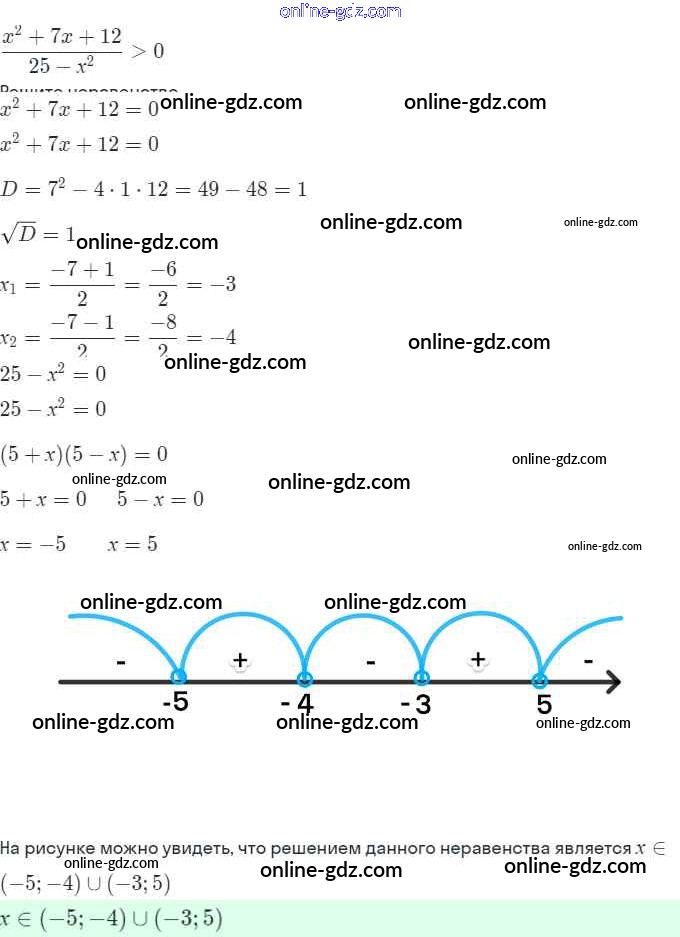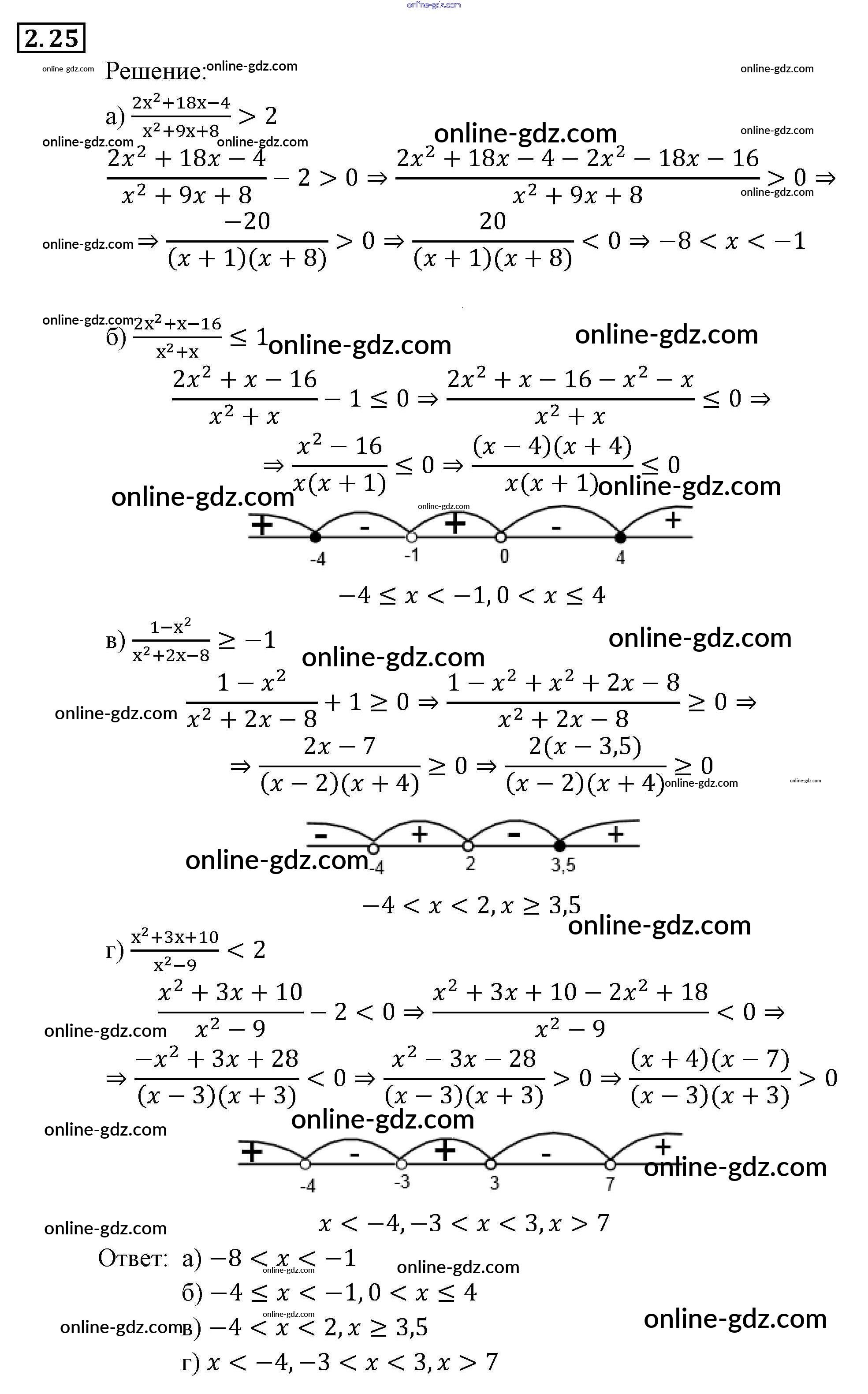 Готовые домашние задания по Алгебре за 9 класс Задачник Мордкович, Александрова 2010 - § 2. Рациональные неравенства Глава 1. Рациональные неравенства и их системы 2.25