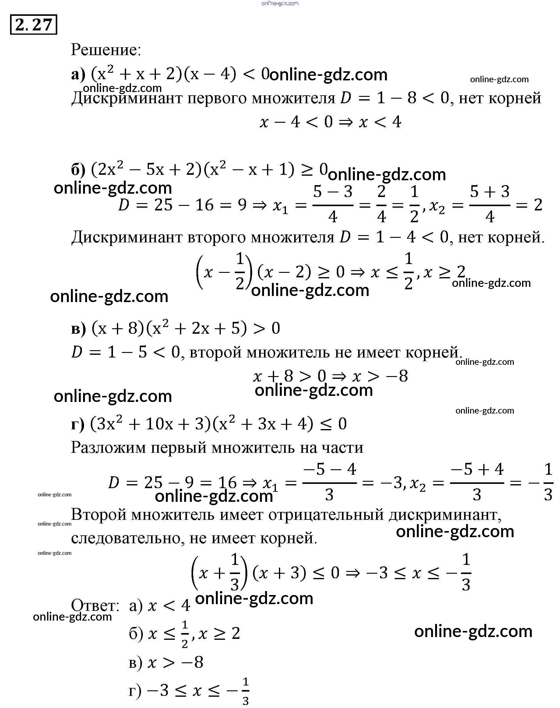Готовые домашние задания по Алгебре за 9 класс Задачник Мордкович, Александрова 2010 - § 2. Рациональные неравенства Глава 1. Рациональные неравенства и их системы 2.27
