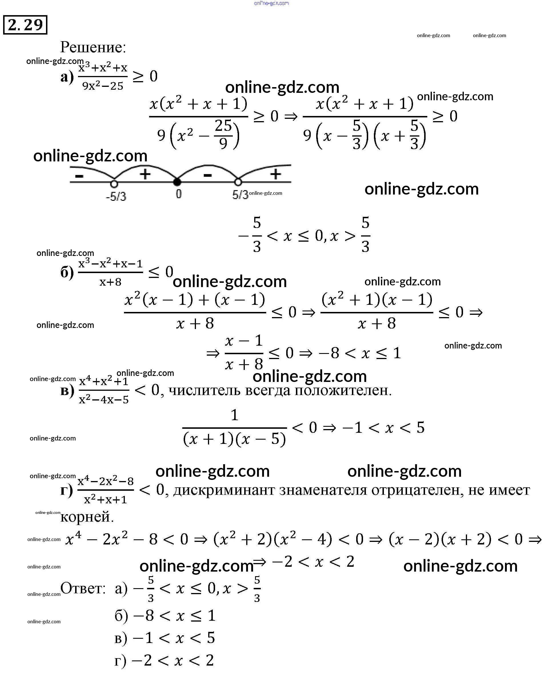 Готовые домашние задания по Алгебре за 9 класс Задачник Мордкович, Александрова 2010 - § 2. Рациональные неравенства Глава 1. Рациональные неравенства и их системы 2.29