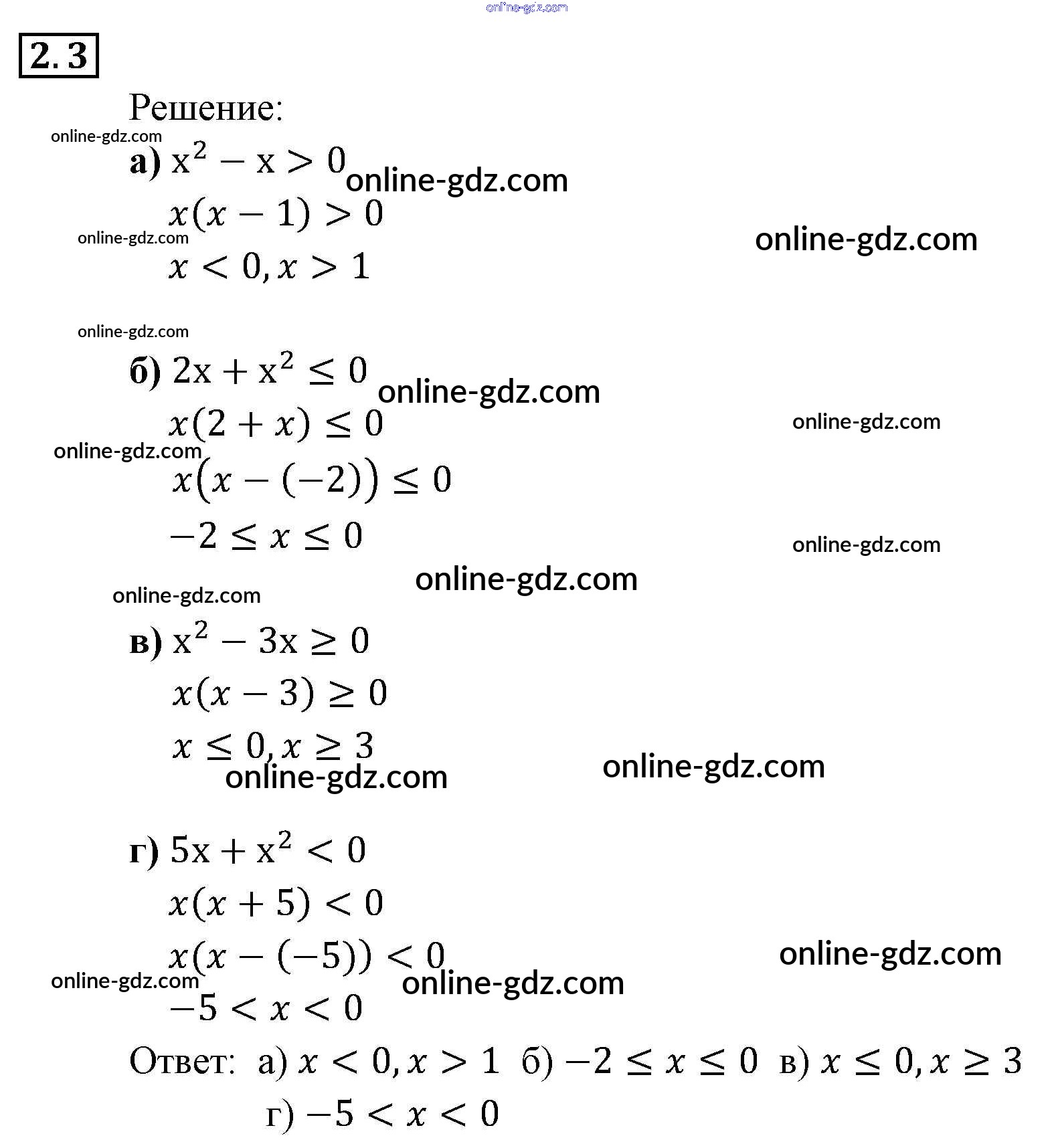 Готовые домашние задания по Алгебре за 9 класс Задачник Мордкович, Александрова 2010 - § 2. Рациональные неравенства Глава 1. Рациональные неравенства и их системы 2.3