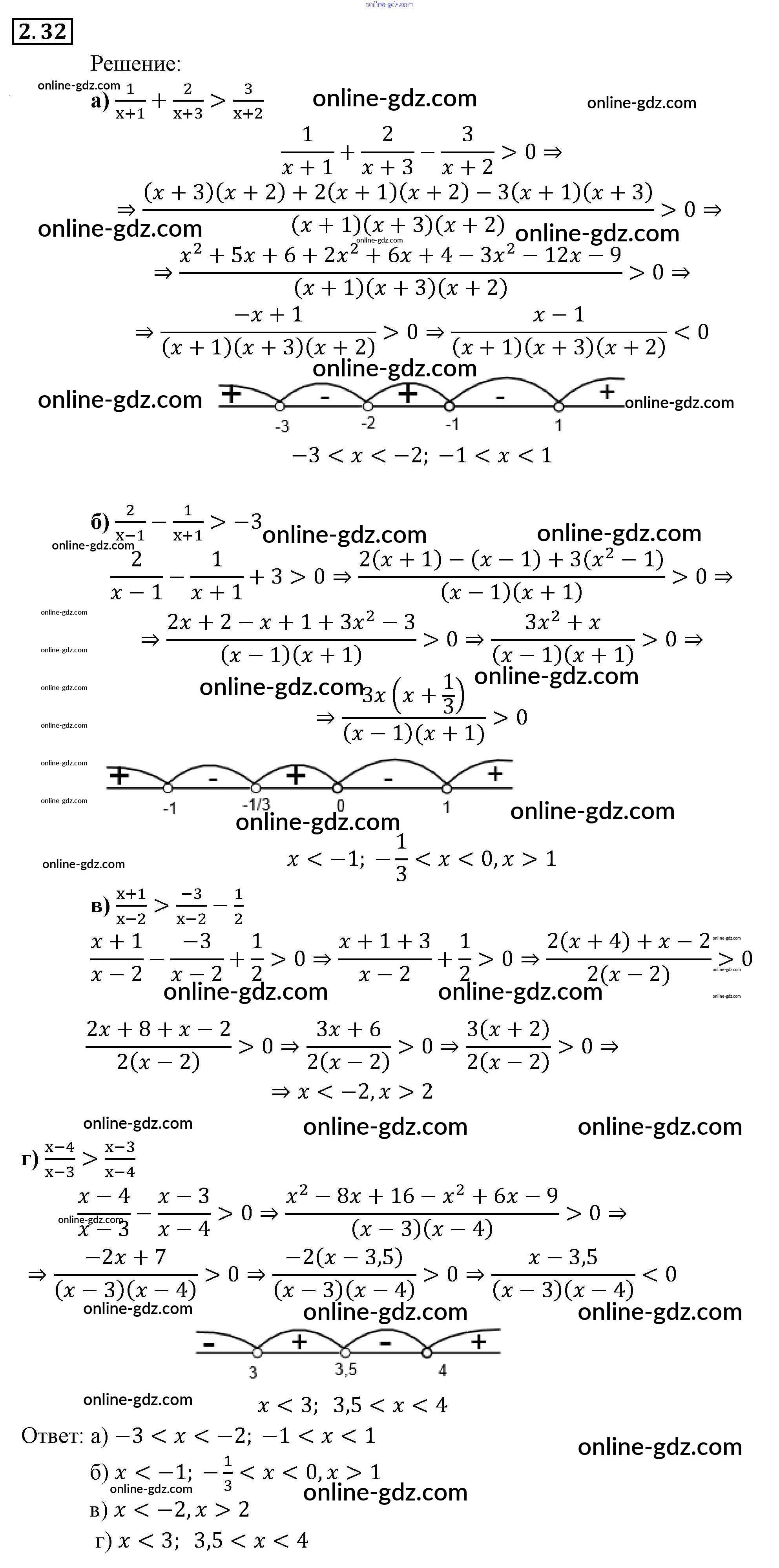 Готовые домашние задания по Алгебре за 9 класс Задачник Мордкович, Александрова 2010 - § 2. Рациональные неравенства Глава 1. Рациональные неравенства и их системы 2.32