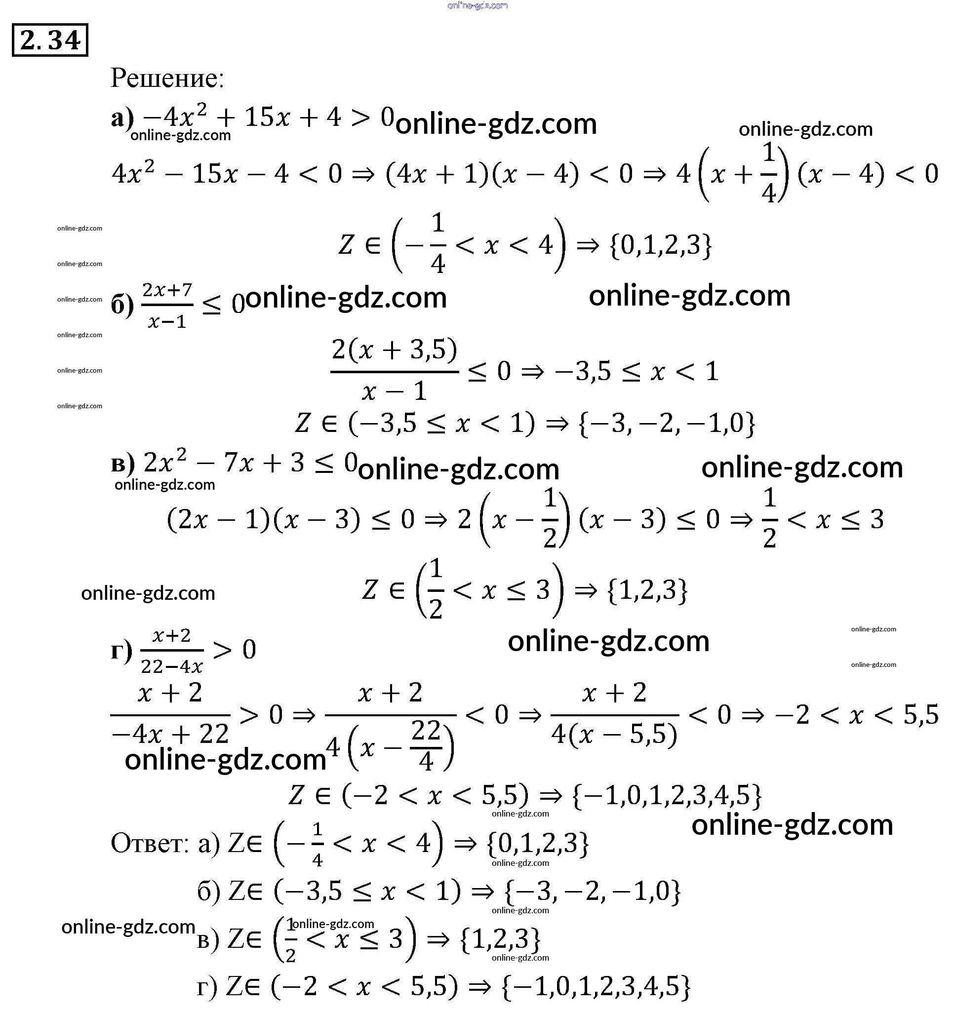 Готовые домашние задания по Алгебре за 9 класс Задачник Мордкович, Александрова 2010 - § 2. Рациональные неравенства Глава 1. Рациональные неравенства и их системы 2.34