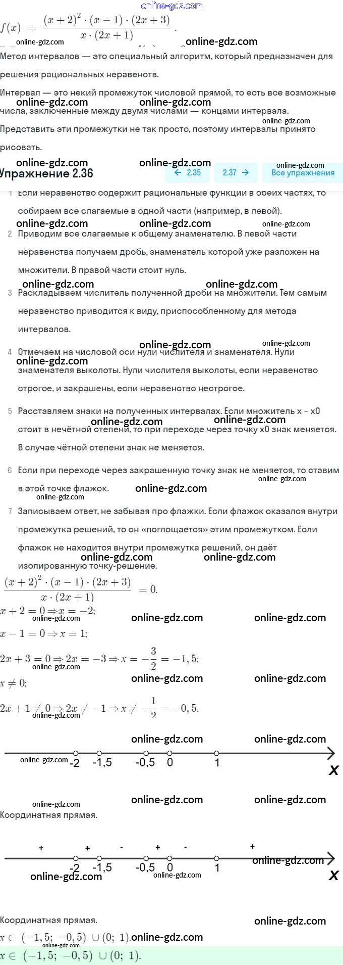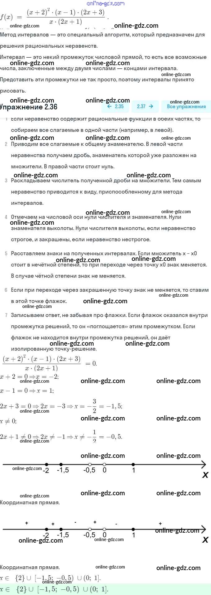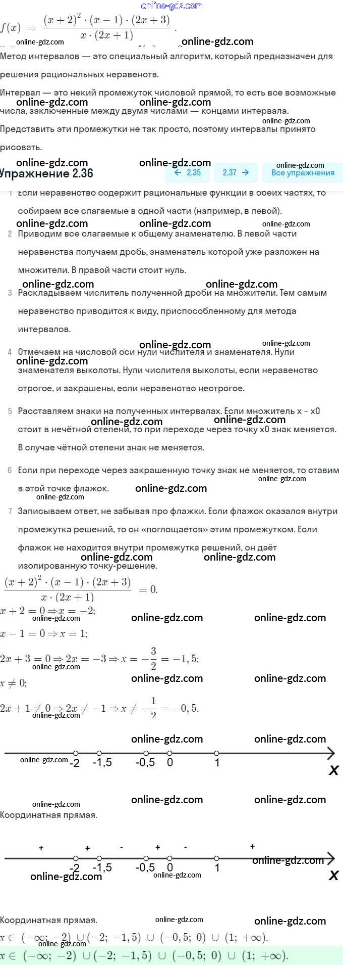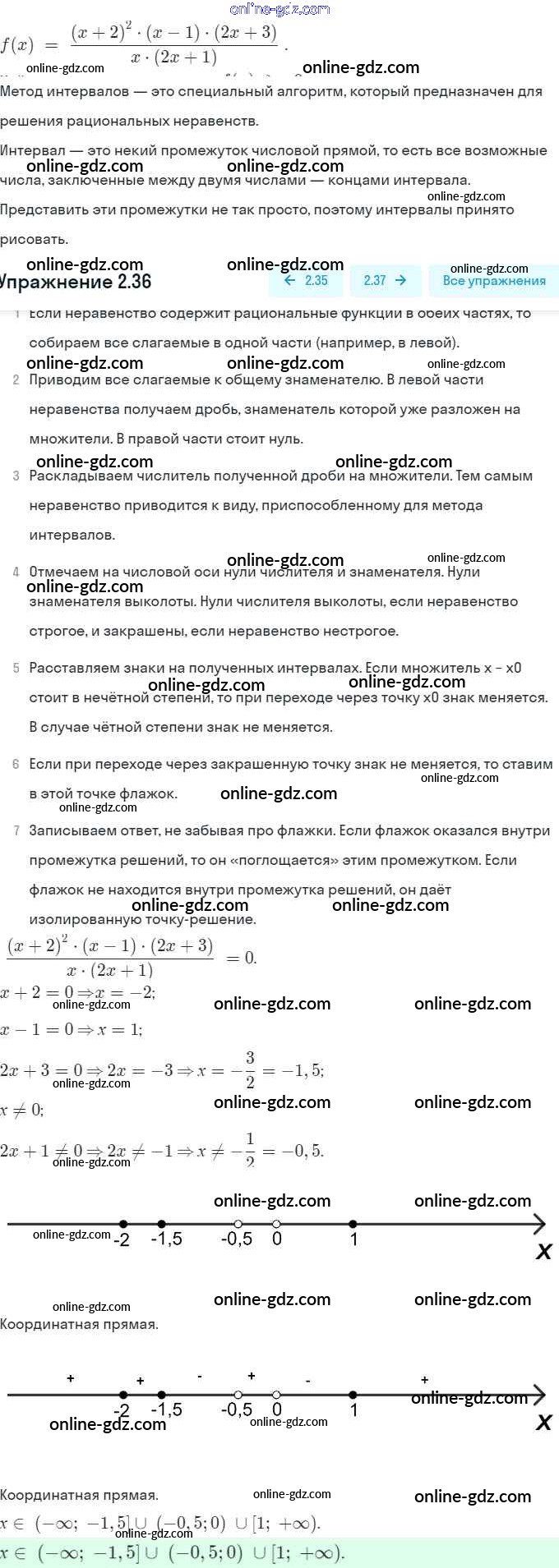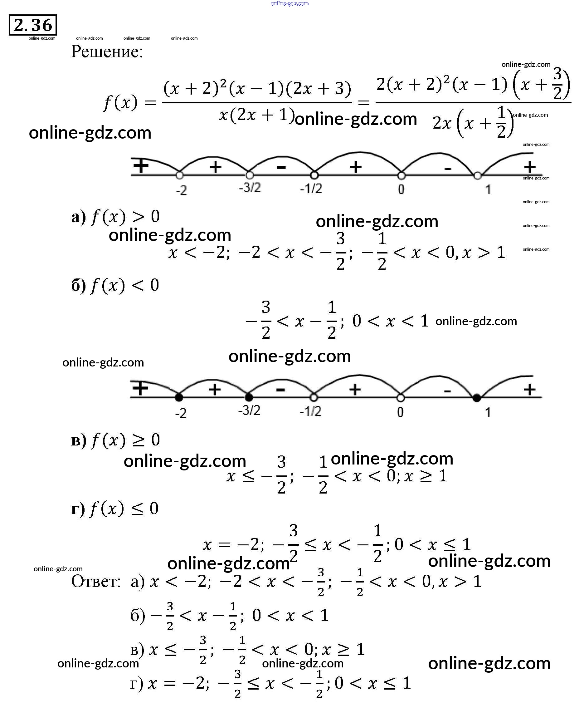 Готовые домашние задания по Алгебре за 9 класс Задачник Мордкович, Александрова 2010 - § 2. Рациональные неравенства Глава 1. Рациональные неравенства и их системы 2.36