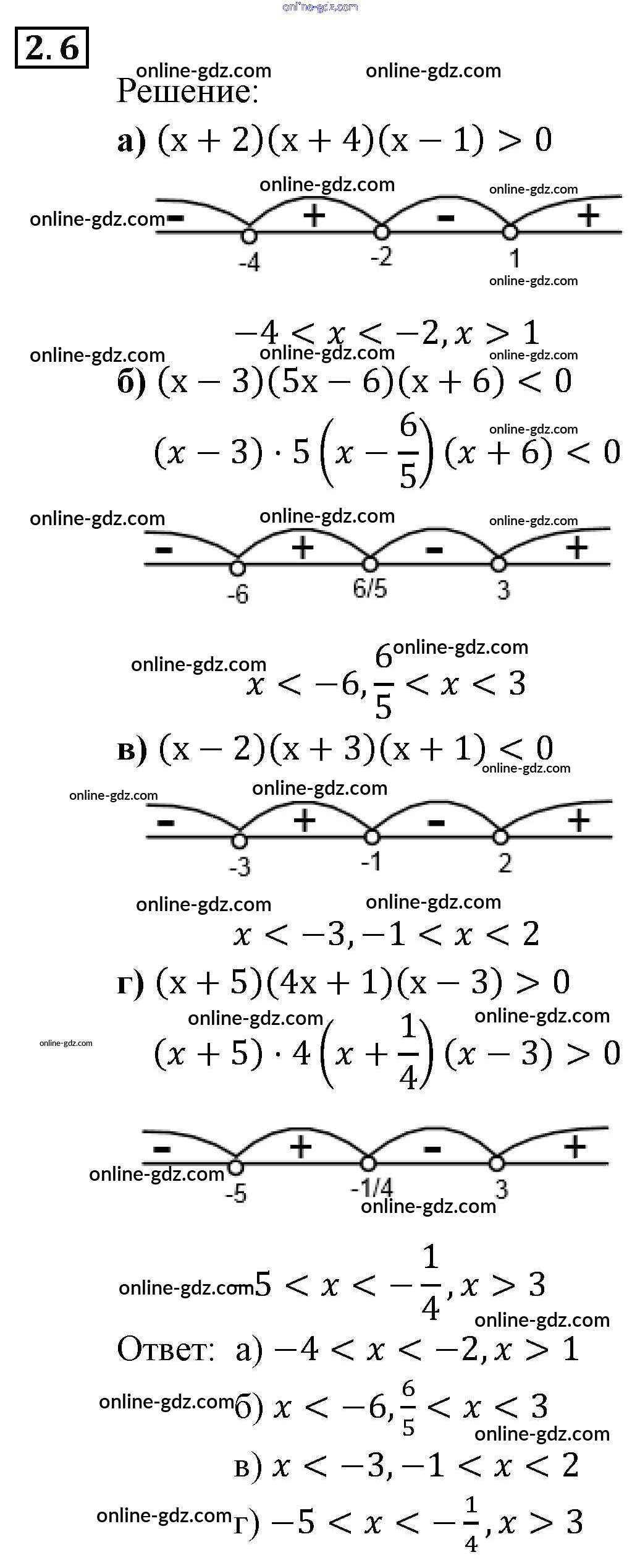 Готовые домашние задания по Алгебре за 9 класс Задачник Мордкович, Александрова 2010 - § 2. Рациональные неравенства Глава 1. Рациональные неравенства и их системы 2.6