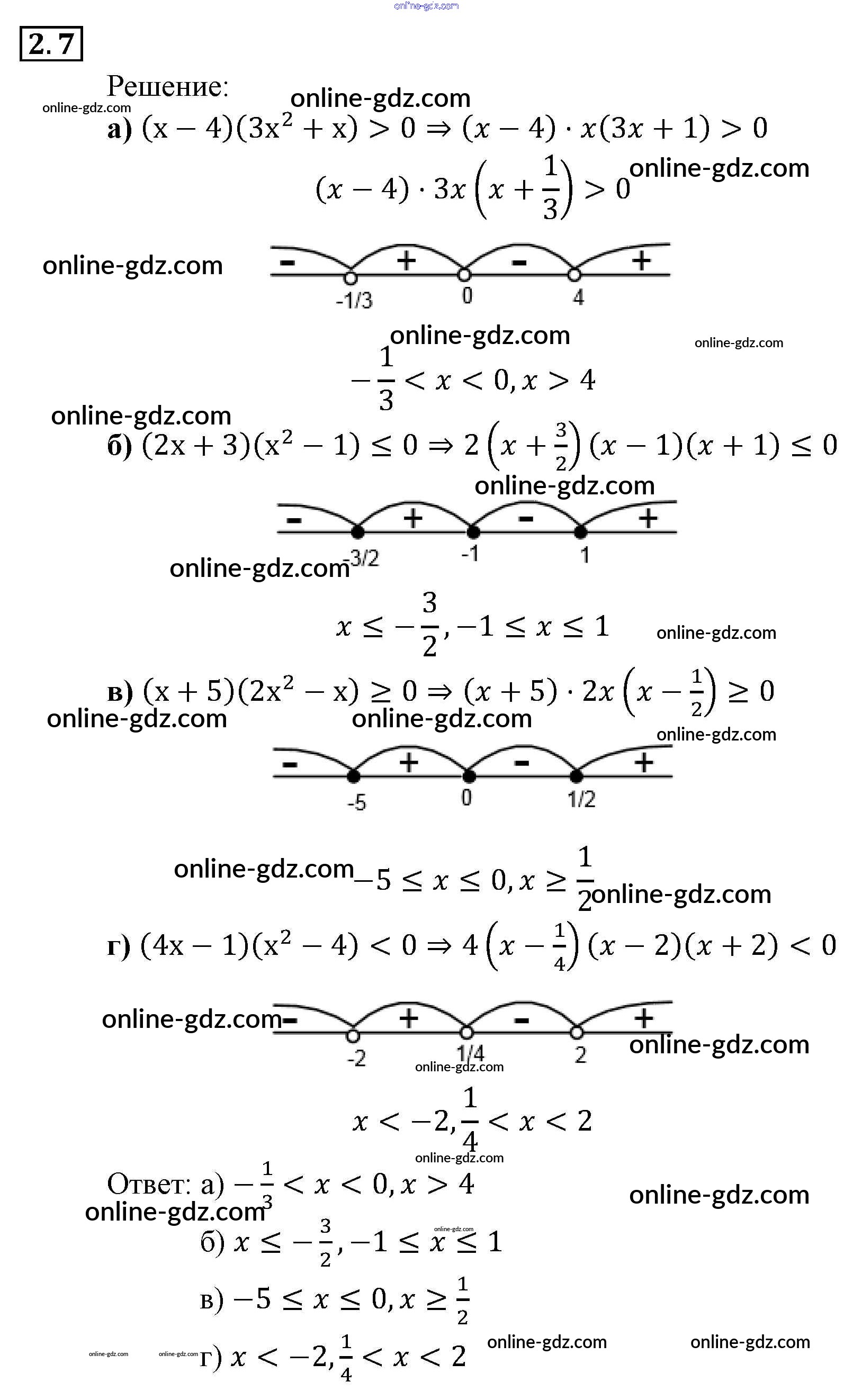 Готовые домашние задания по Алгебре за 9 класс Задачник Мордкович, Александрова 2010 - § 2. Рациональные неравенства Глава 1. Рациональные неравенства и их системы 2.7