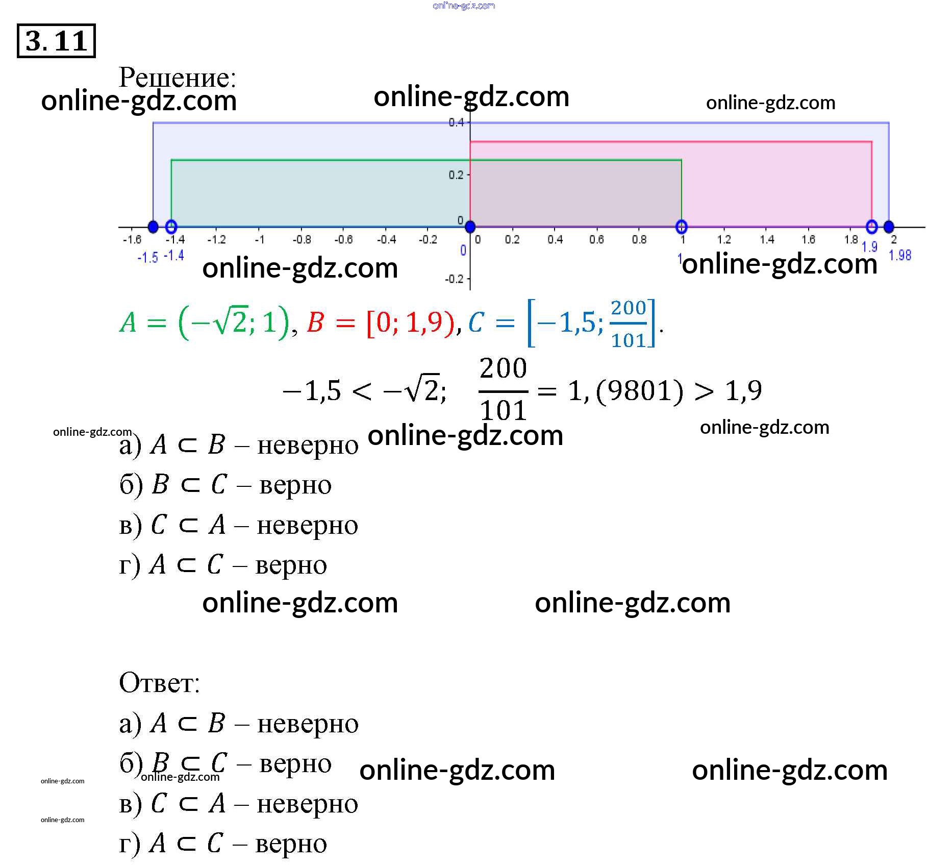 Готовые домашние задания по Алгебре за 9 класс Задачник Мордкович, Александрова 2010 - § 3. Множества и операции над ними Глава 1. Рациональные неравенства и их системы 3.11
