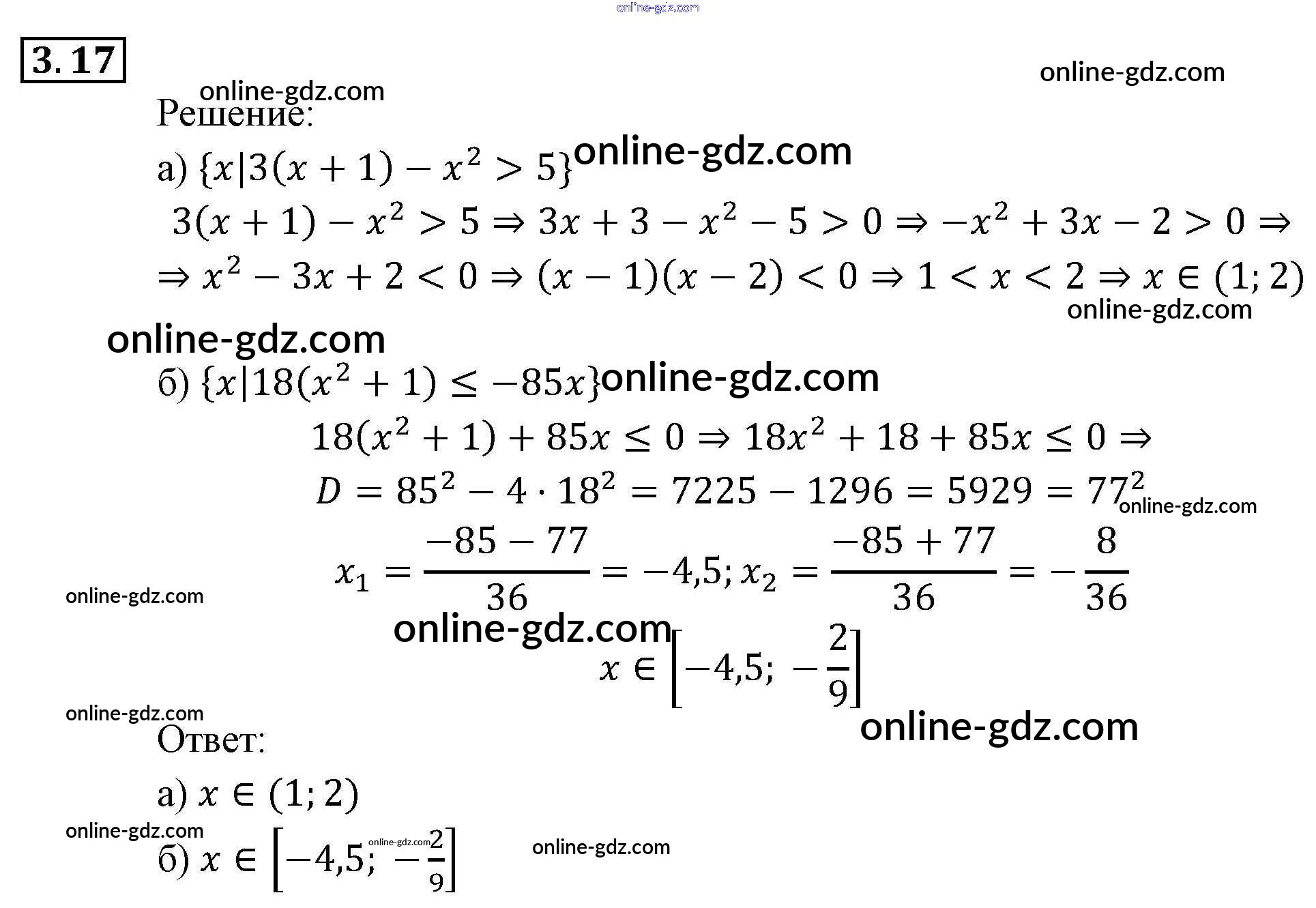 Готовые домашние задания по Алгебре за 9 класс Задачник Мордкович, Александрова 2010 - § 3. Множества и операции над ними Глава 1. Рациональные неравенства и их системы 3.17