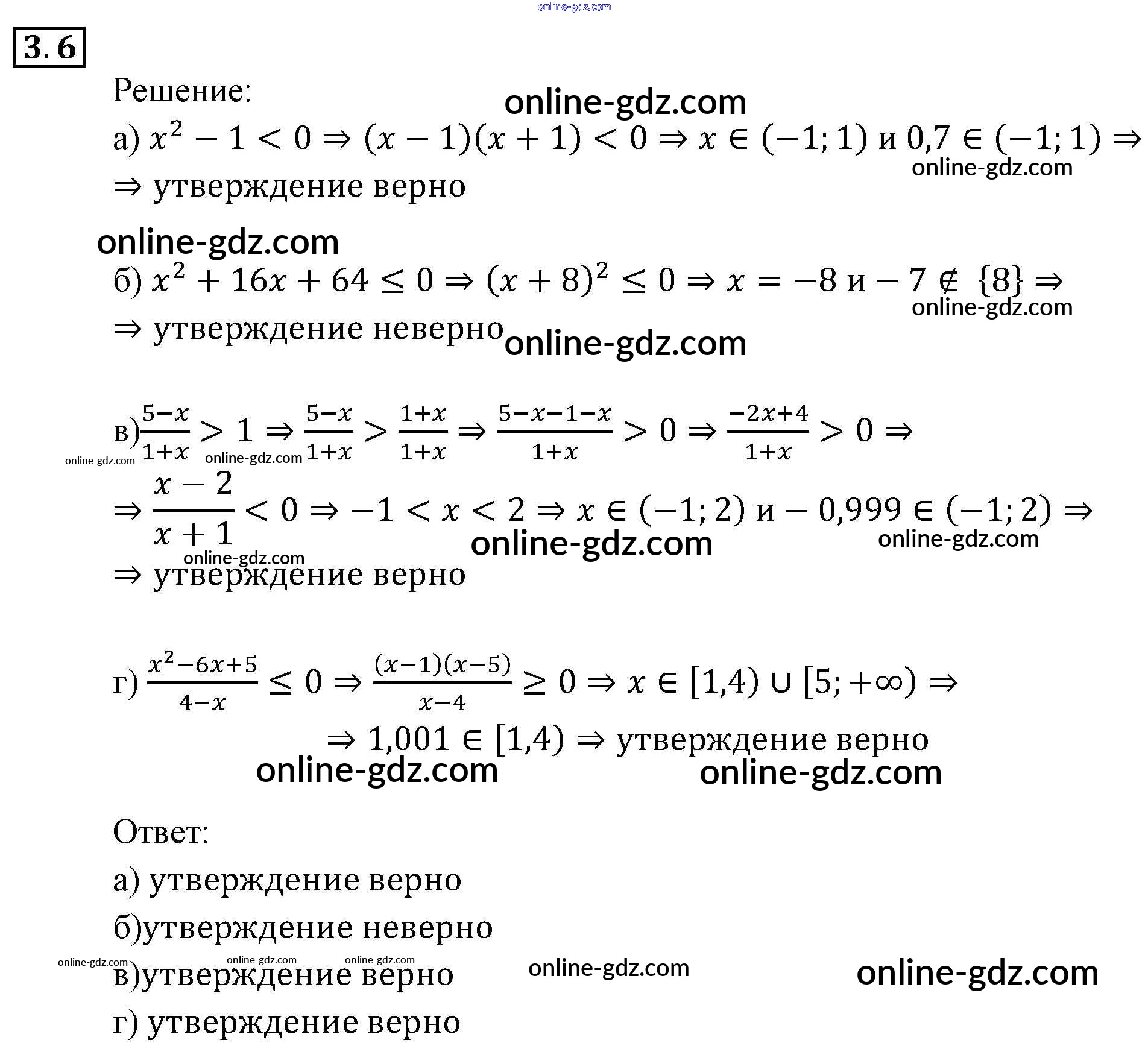 Готовые домашние задания по Алгебре за 9 класс Задачник Мордкович, Александрова 2010 - § 3. Множества и операции над ними Глава 1. Рациональные неравенства и их системы 3.6
