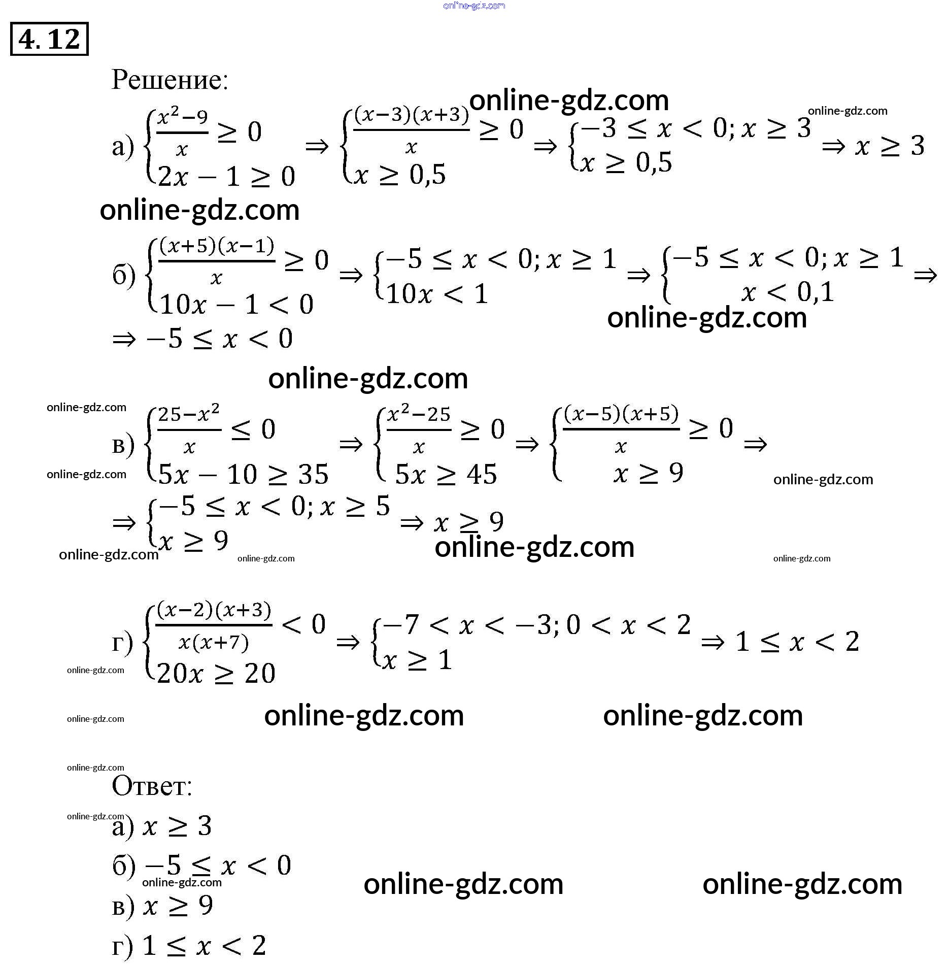 Готовые домашние задания по Алгебре за 9 класс Задачник Мордкович, Александрова 2010 - § 4. Системы рациональных неравенств Глава 1. Рациональные неравенства и их системы 4.12