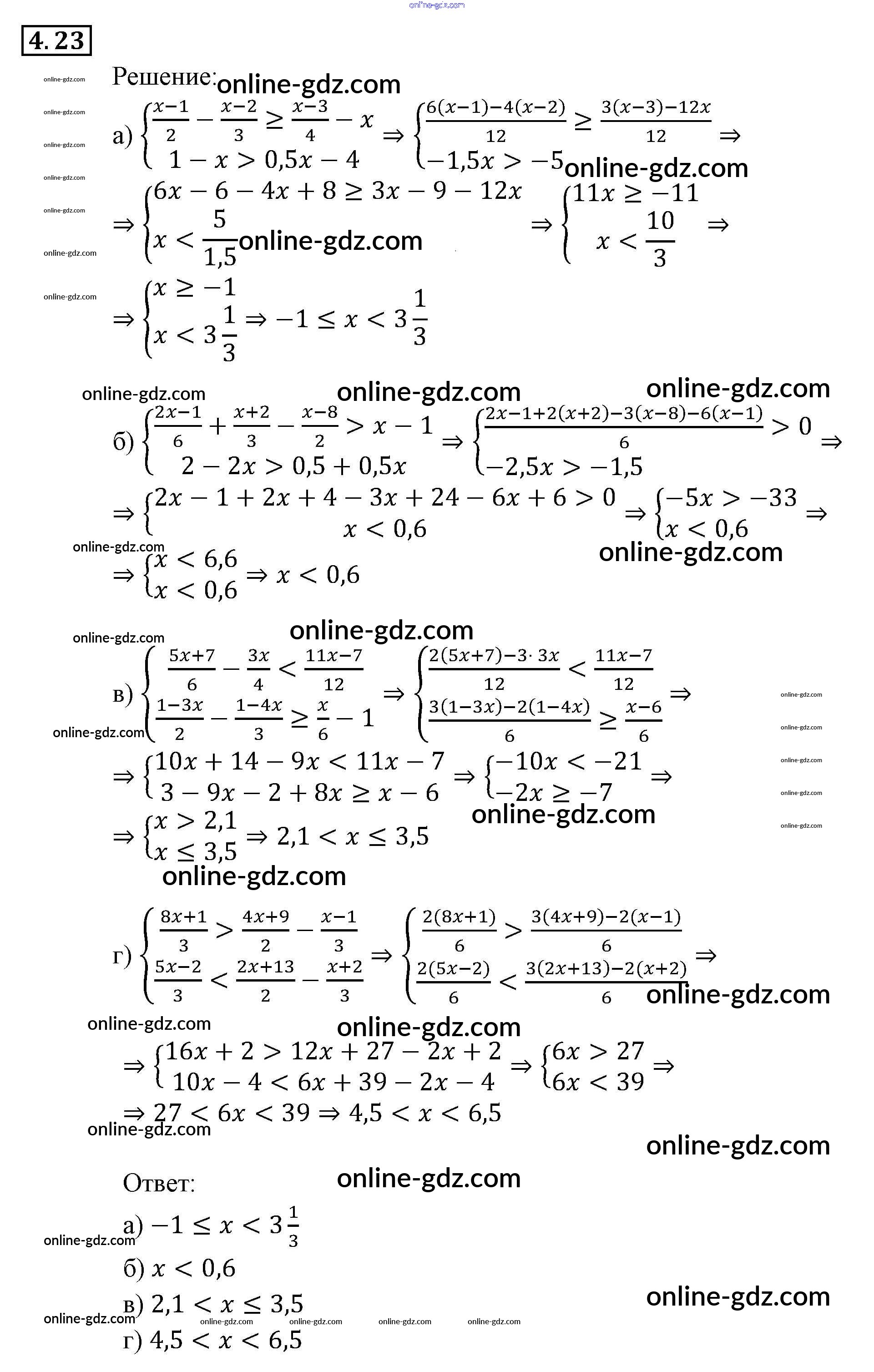 Готовые домашние задания по Алгебре за 9 класс Задачник Мордкович, Александрова 2010 - § 4. Системы рациональных неравенств Глава 1. Рациональные неравенства и их системы 4.23