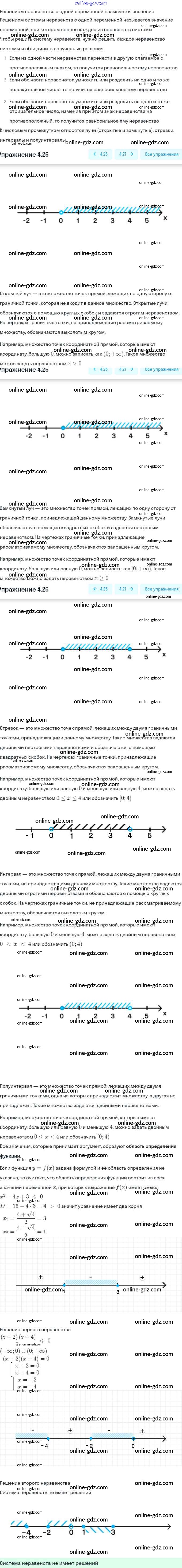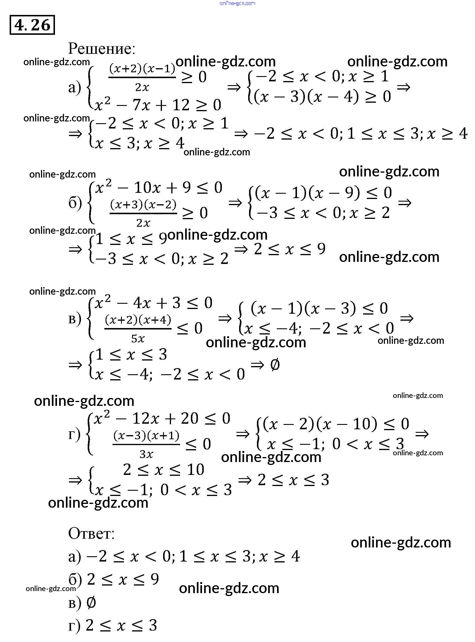 Готовые домашние задания по Алгебре за 9 класс Задачник Мордкович, Александрова 2010 - § 4. Системы рациональных неравенств Глава 1. Рациональные неравенства и их системы 4.26