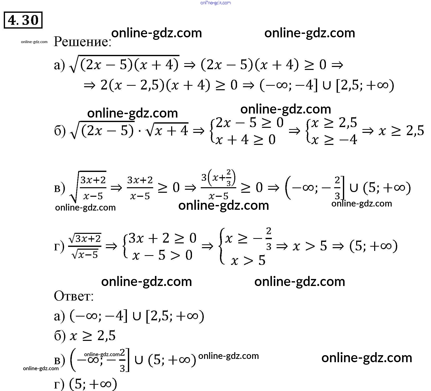 Готовые домашние задания по Алгебре за 9 класс Задачник Мордкович, Александрова 2010 - § 4. Системы рациональных неравенств Глава 1. Рациональные неравенства и их системы 4.30