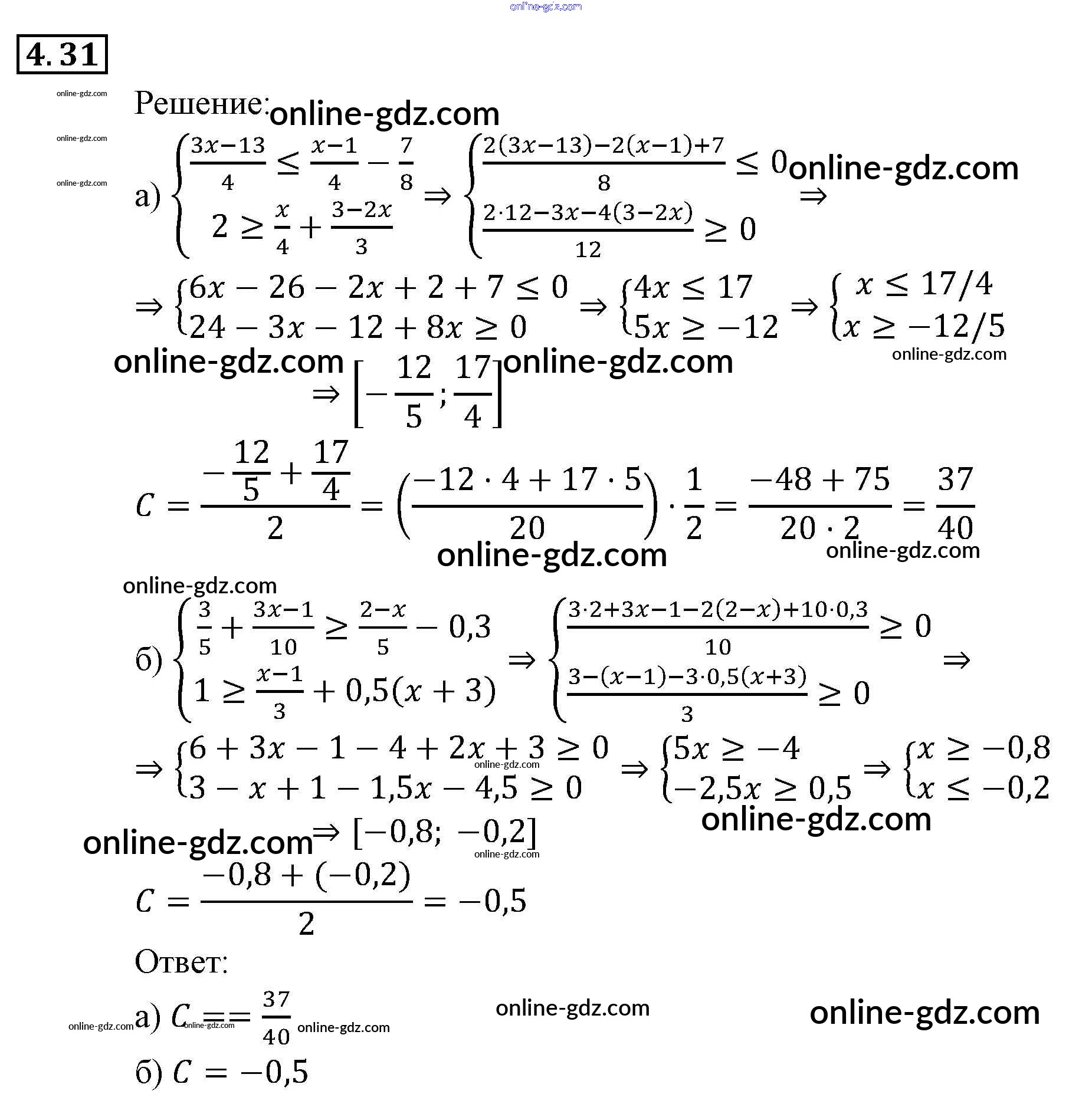 Готовые домашние задания по Алгебре за 9 класс Задачник Мордкович, Александрова 2010 - § 4. Системы рациональных неравенств Глава 1. Рациональные неравенства и их системы 4.31