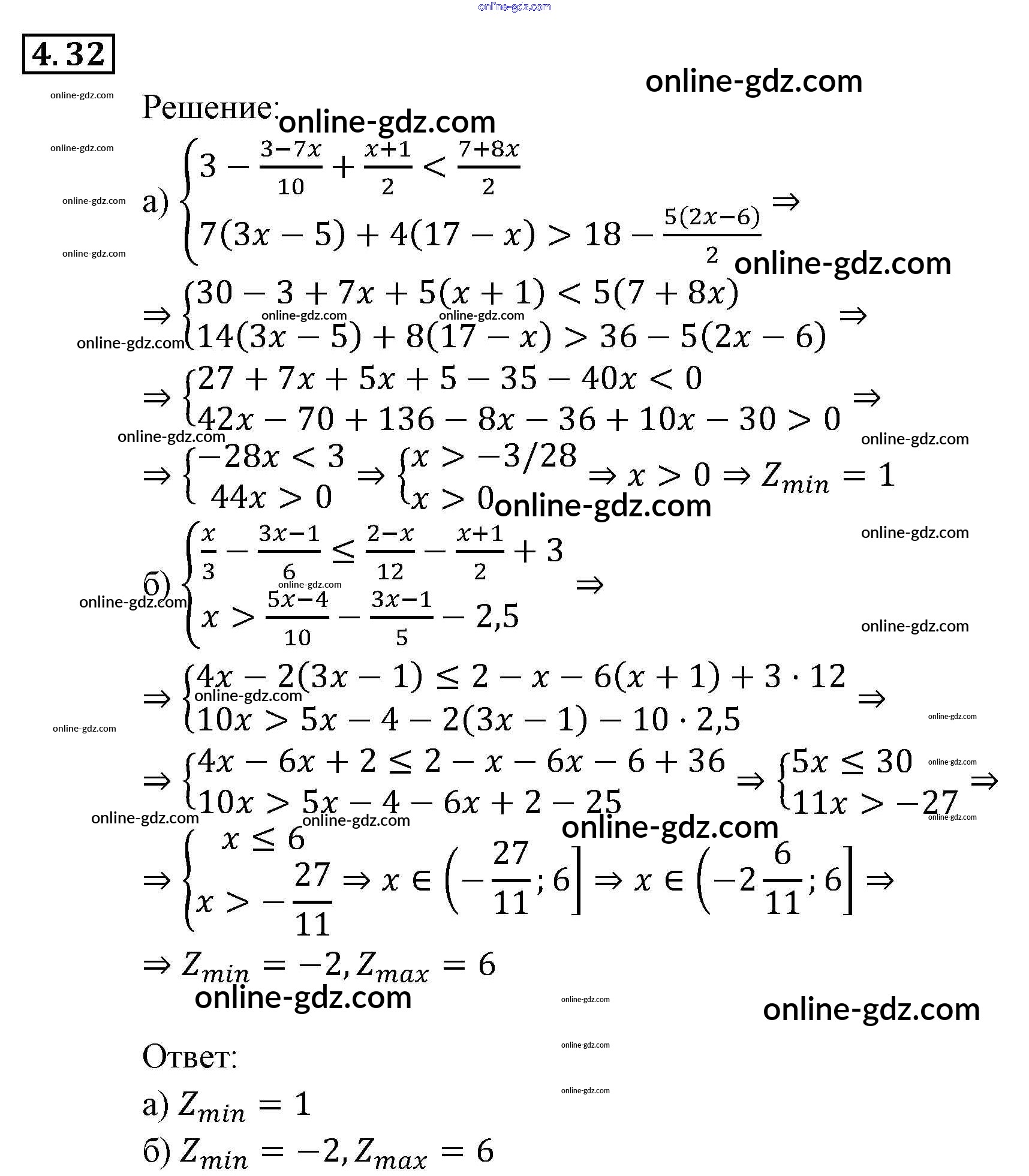 Готовые домашние задания по Алгебре за 9 класс Задачник Мордкович, Александрова 2010 - § 4. Системы рациональных неравенств Глава 1. Рациональные неравенства и их системы 4.32