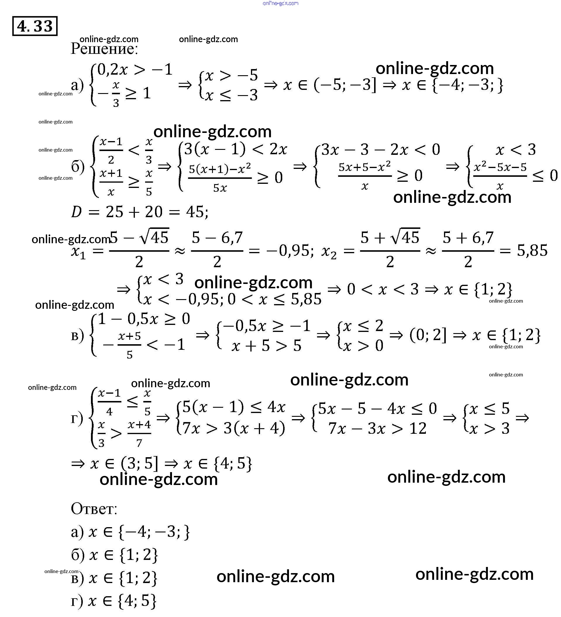 Готовые домашние задания по Алгебре за 9 класс Задачник Мордкович, Александрова 2010 - § 4. Системы рациональных неравенств Глава 1. Рациональные неравенства и их системы 4.33