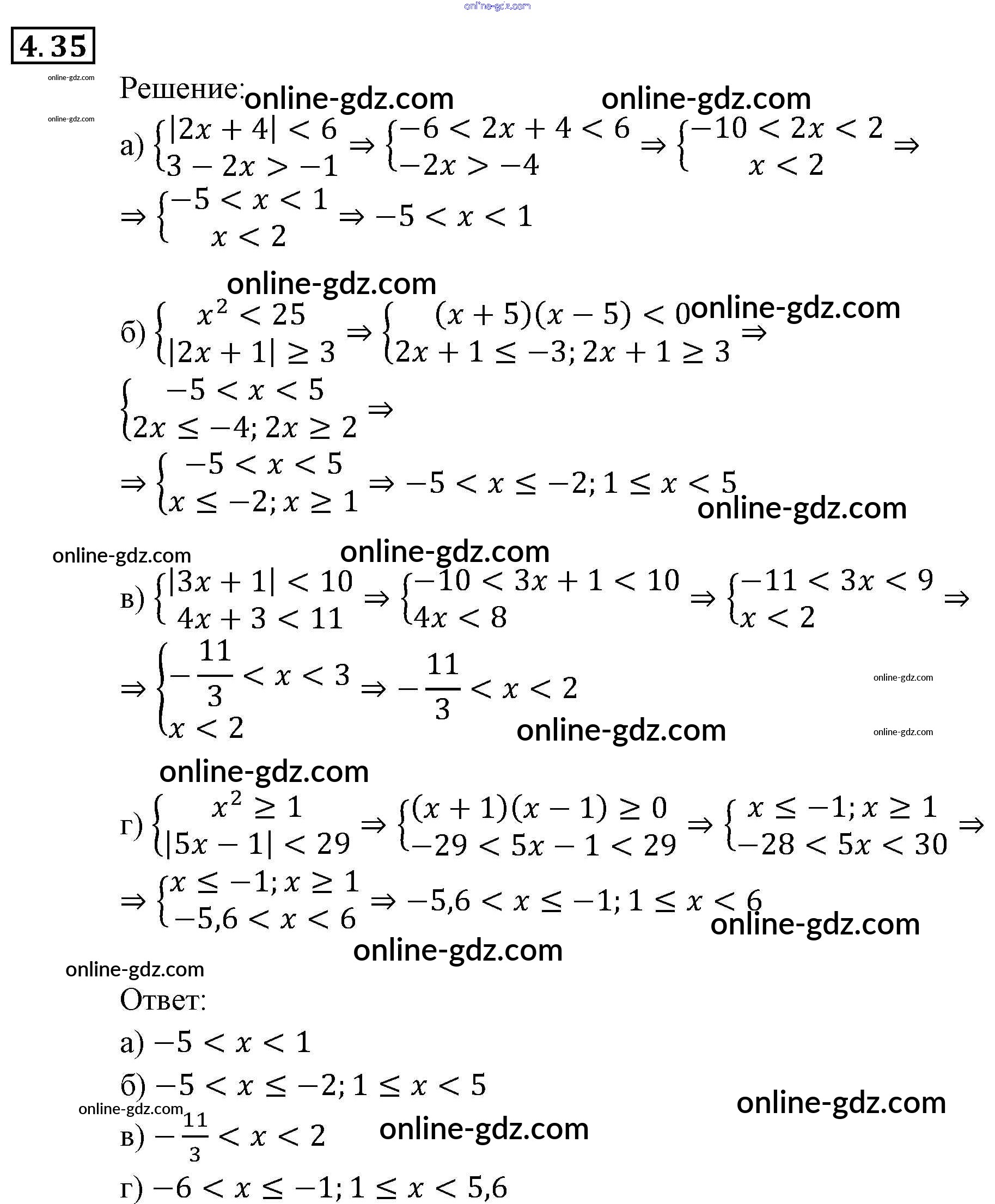 Готовые домашние задания по Алгебре за 9 класс Задачник Мордкович, Александрова 2010 - § 4. Системы рациональных неравенств Глава 1. Рациональные неравенства и их системы 4.35
