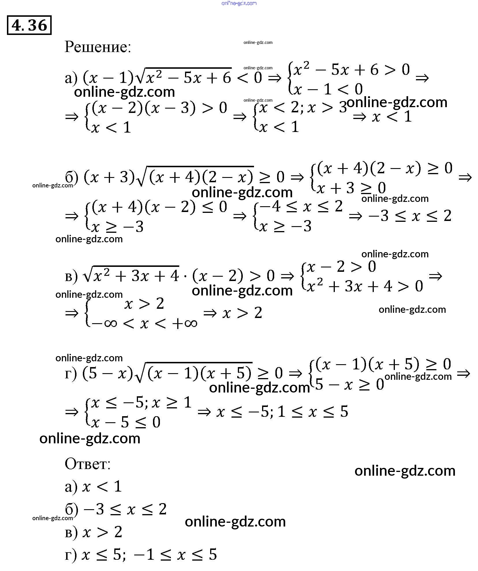 Готовые домашние задания по Алгебре за 9 класс Задачник Мордкович, Александрова 2010 - § 4. Системы рациональных неравенств Глава 1. Рациональные неравенства и их системы 4.36