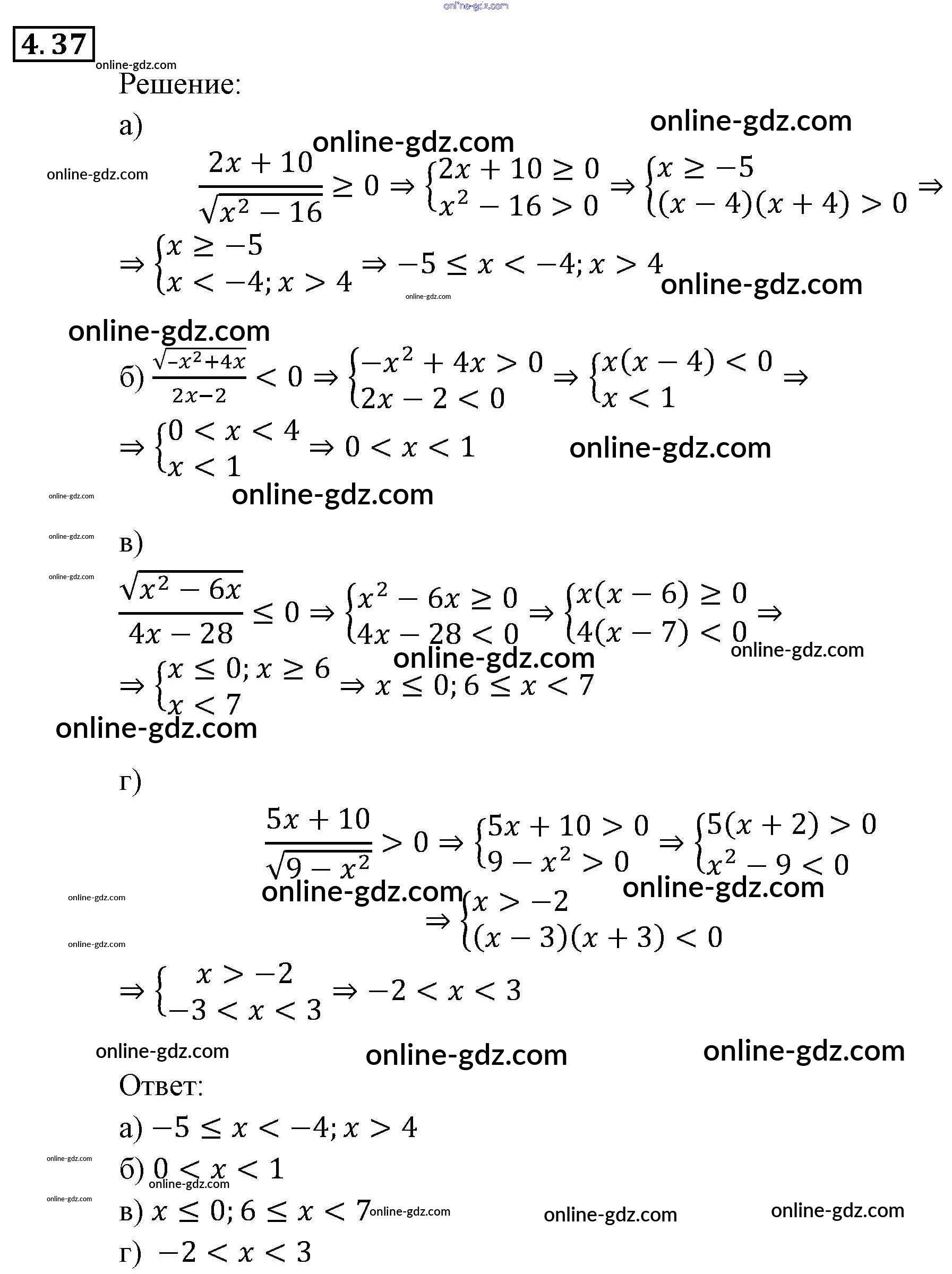 Готовые домашние задания по Алгебре за 9 класс Задачник Мордкович, Александрова 2010 - § 4. Системы рациональных неравенств Глава 1. Рациональные неравенства и их системы 4.37