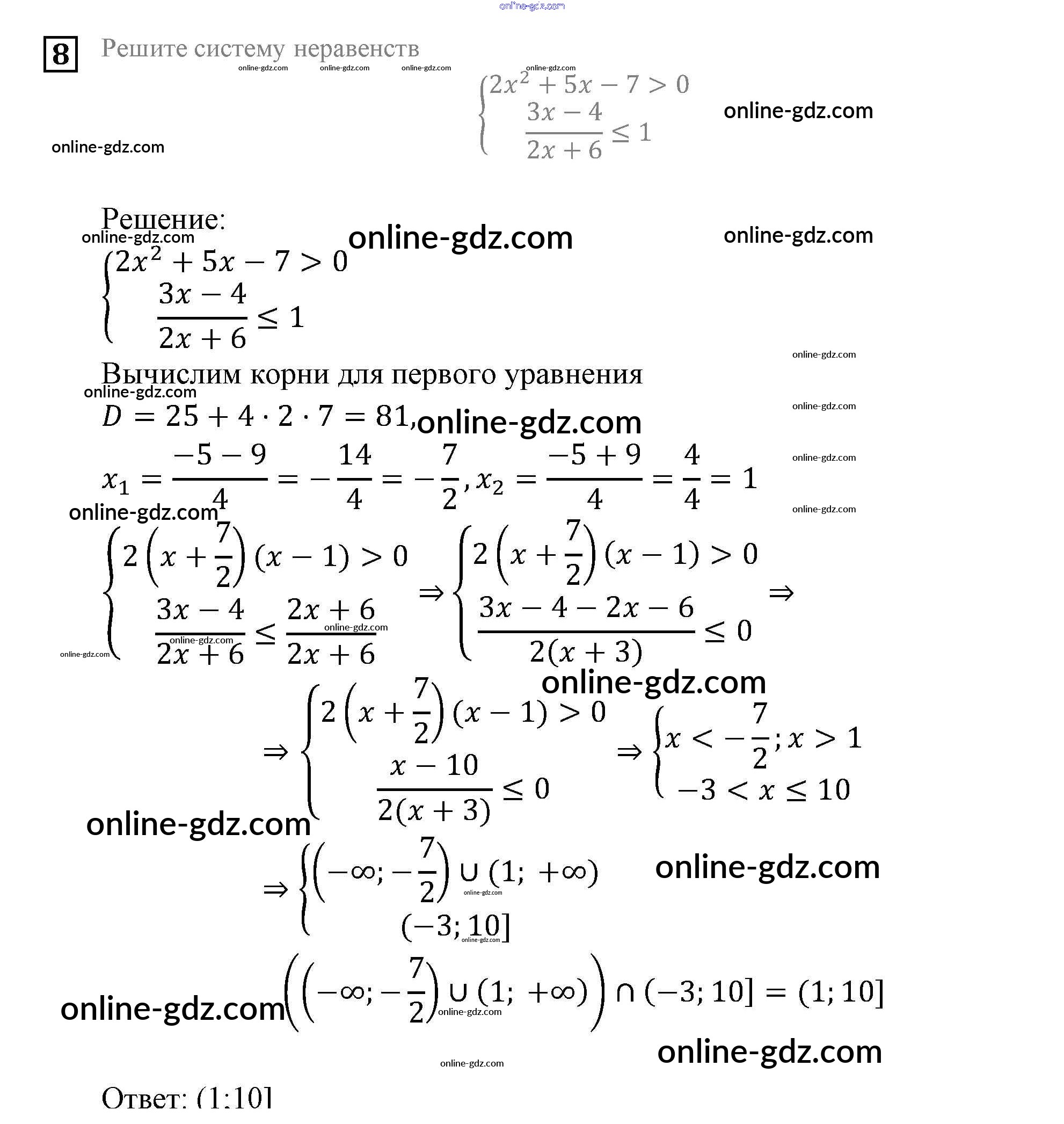 Готовые домашние задания по Алгебре за 9 класс Задачник Мордкович, Александрова 2010 - Вариант 1 Контрольная работа №1 8