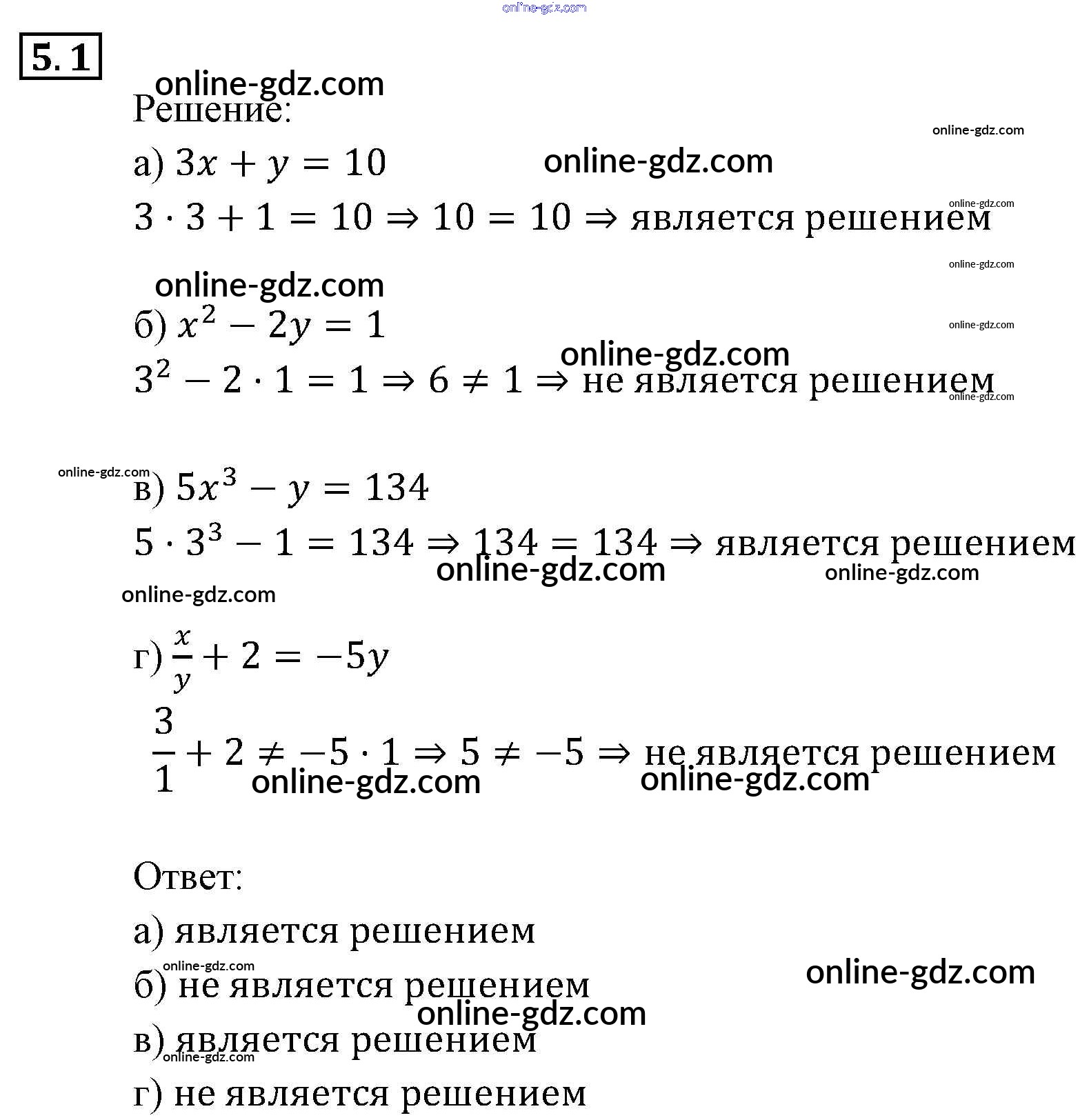 Готовые домашние задания по Алгебре за 9 класс Задачник Мордкович, Александрова 2010 - § 5. Основные понятия Глава 2. Системы уравнений 5.1