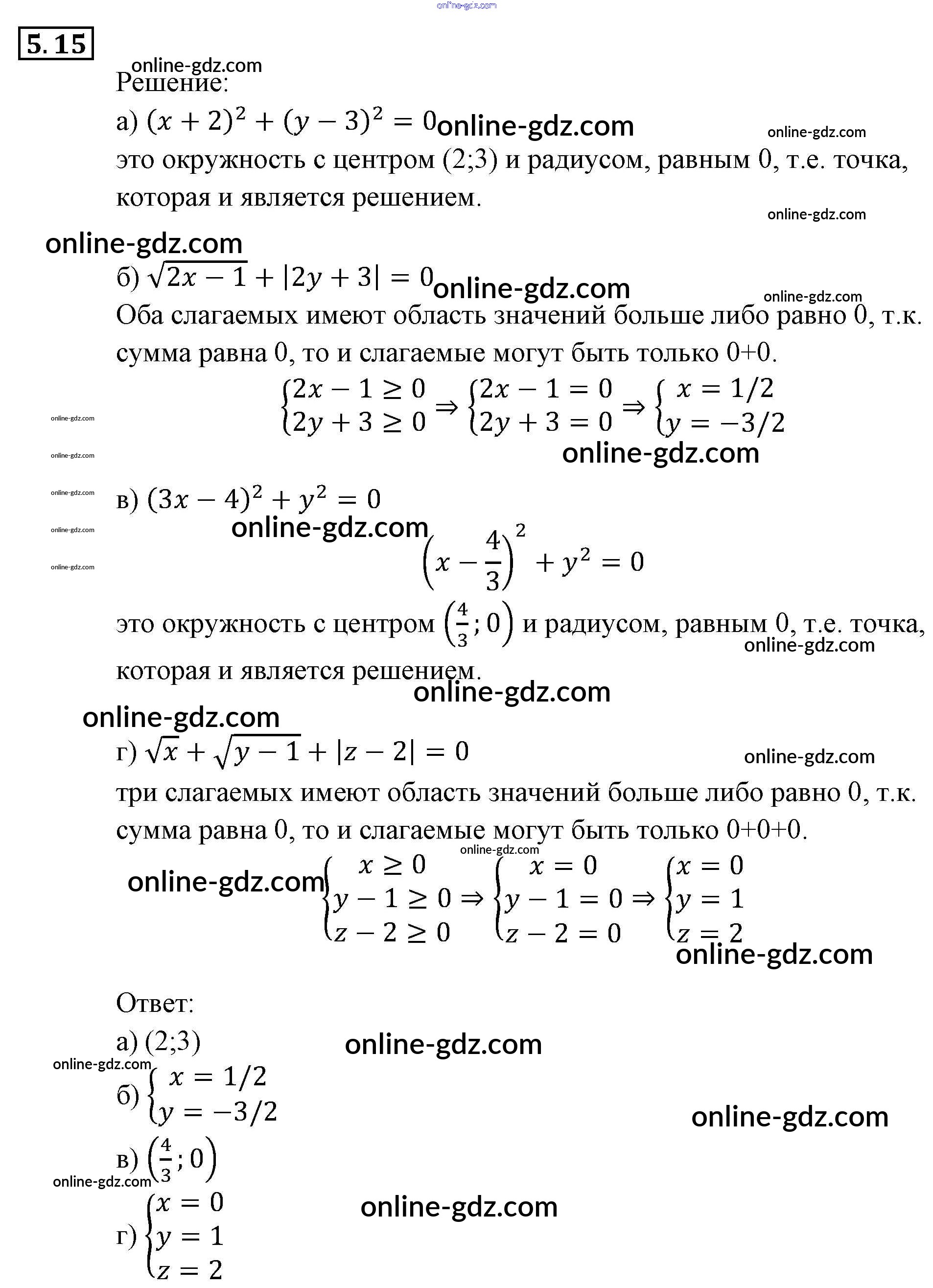 Готовые домашние задания по Алгебре за 9 класс Задачник Мордкович, Александрова 2010 - § 5. Основные понятия Глава 2. Системы уравнений 5.15