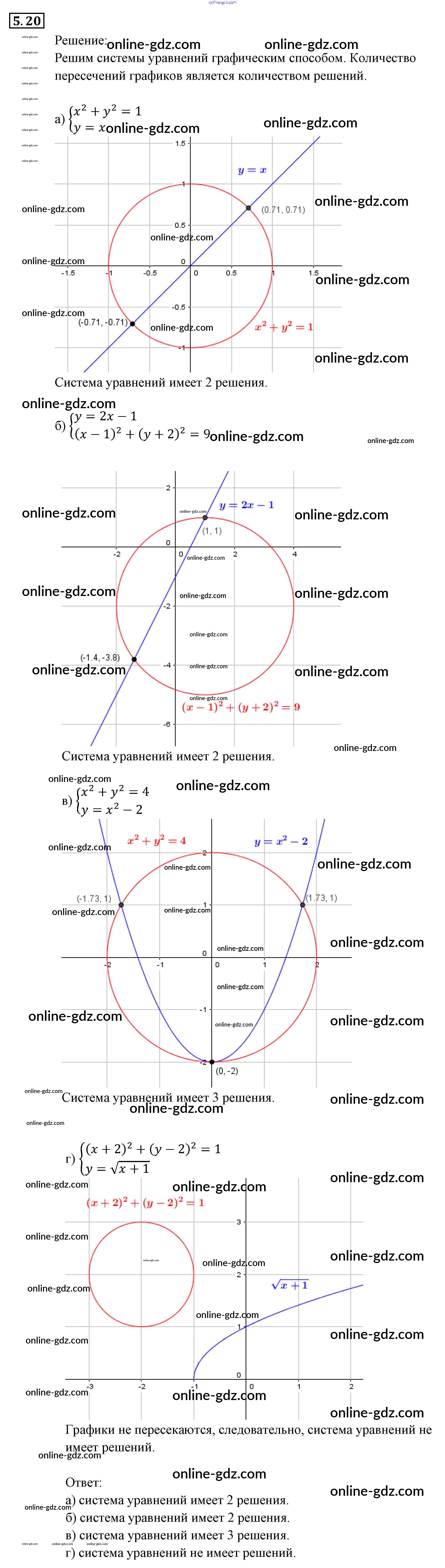 Готовые домашние задания по Алгебре за 9 класс Задачник Мордкович, Александрова 2010 - § 5. Основные понятия Глава 2. Системы уравнений 5.20