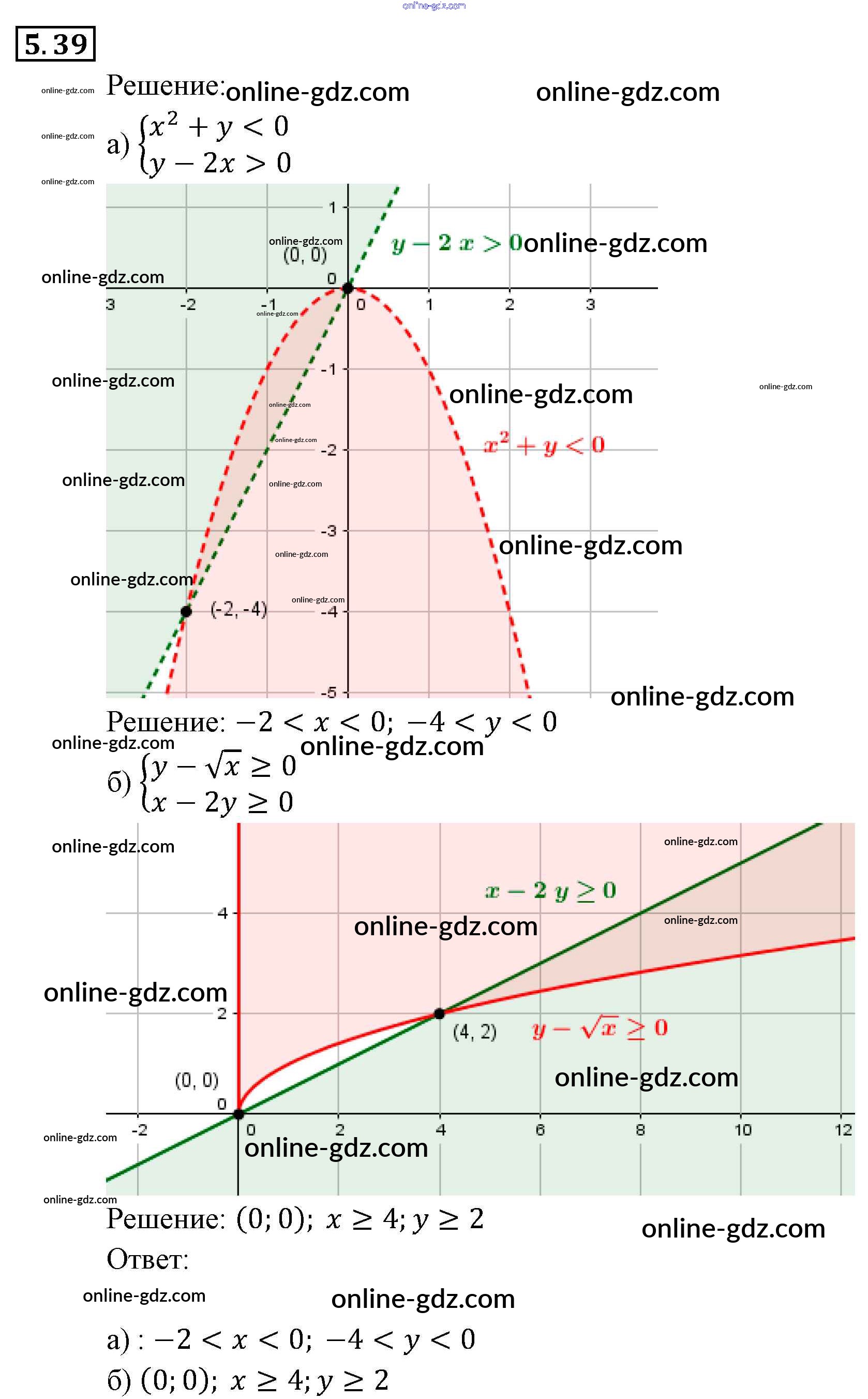 Готовые домашние задания по Алгебре за 9 класс Задачник Мордкович, Александрова 2010 - § 5. Основные понятия Глава 2. Системы уравнений 5.39
