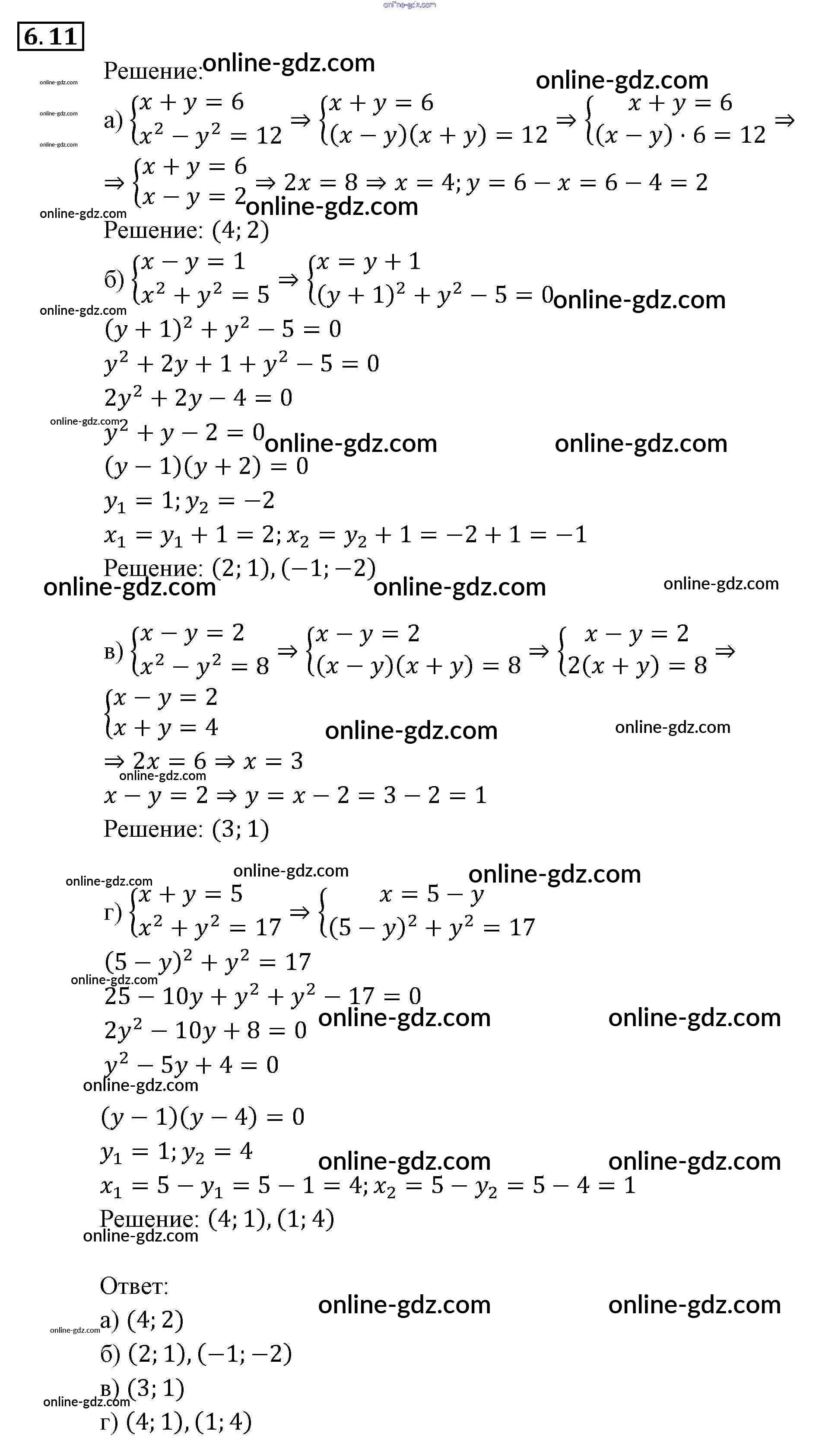 Готовые домашние задания по Алгебре за 9 класс Задачник Мордкович, Александрова 2010 - § 6. Методы решения систем уравнений Глава 2. Системы уравнений 6.11