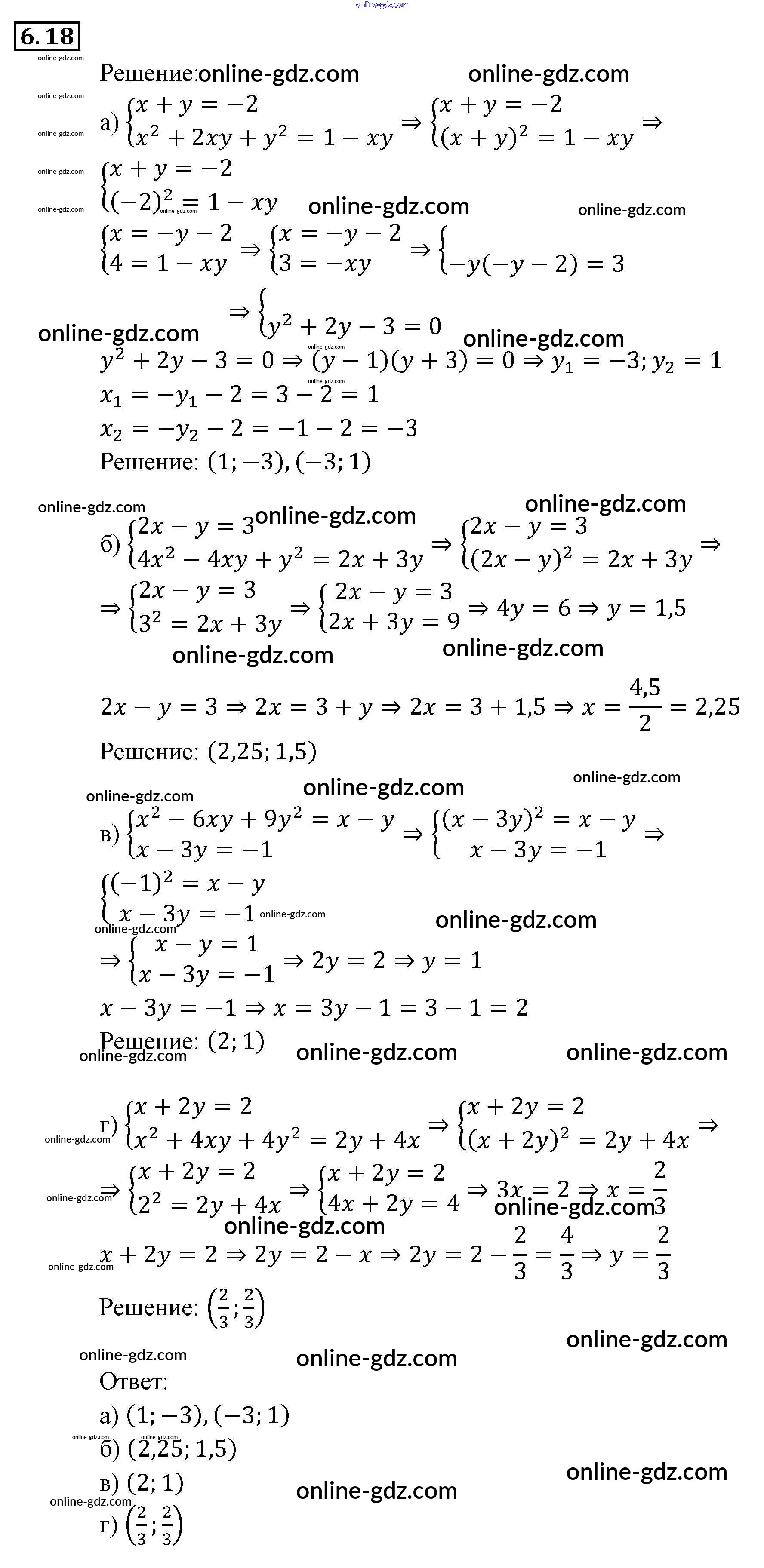 Готовые домашние задания по Алгебре за 9 класс Задачник Мордкович, Александрова 2010 - § 6. Методы решения систем уравнений Глава 2. Системы уравнений 6.18