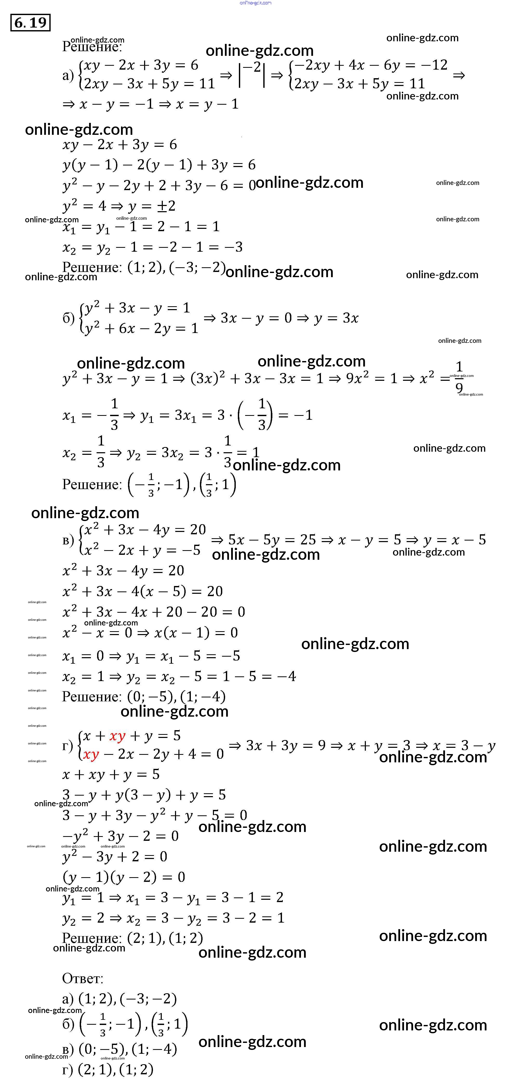 Готовые домашние задания по Алгебре за 9 класс Задачник Мордкович, Александрова 2010 - § 6. Методы решения систем уравнений Глава 2. Системы уравнений 6.19