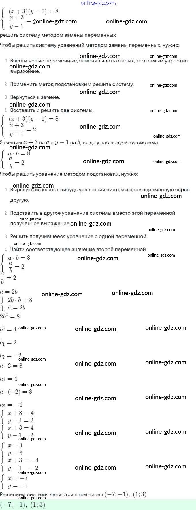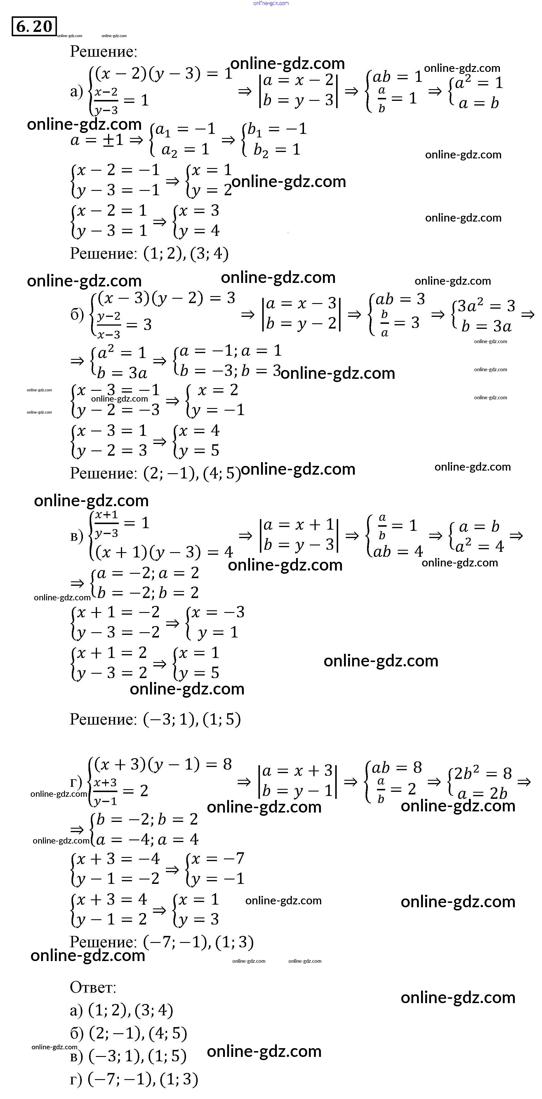Готовые домашние задания по Алгебре за 9 класс Задачник Мордкович, Александрова 2010 - § 6. Методы решения систем уравнений Глава 2. Системы уравнений 6.20