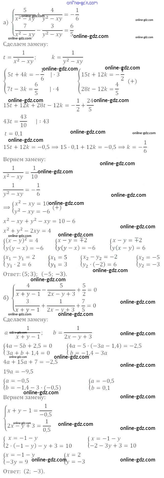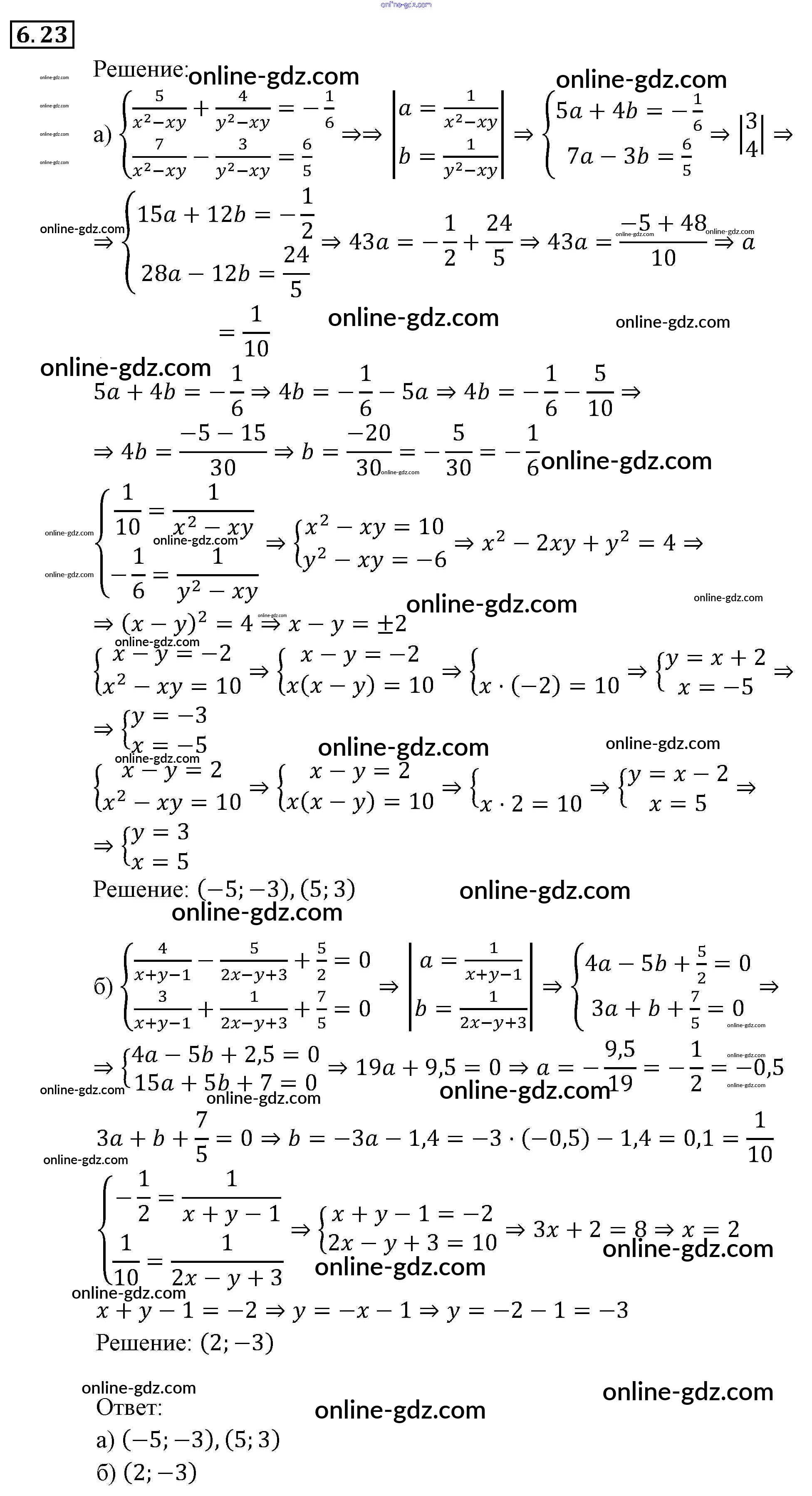 Готовые домашние задания по Алгебре за 9 класс Задачник Мордкович, Александрова 2010 - § 6. Методы решения систем уравнений Глава 2. Системы уравнений 6.23