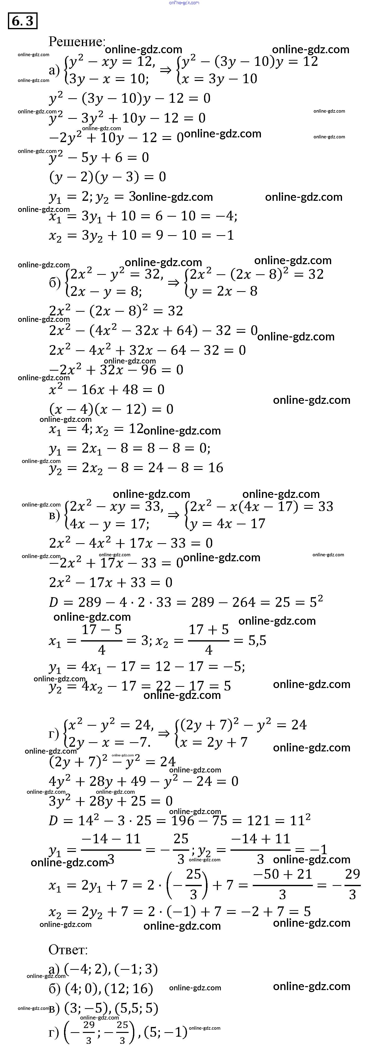 Готовые домашние задания по Алгебре за 9 класс Задачник Мордкович, Александрова 2010 - § 6. Методы решения систем уравнений Глава 2. Системы уравнений 6.3