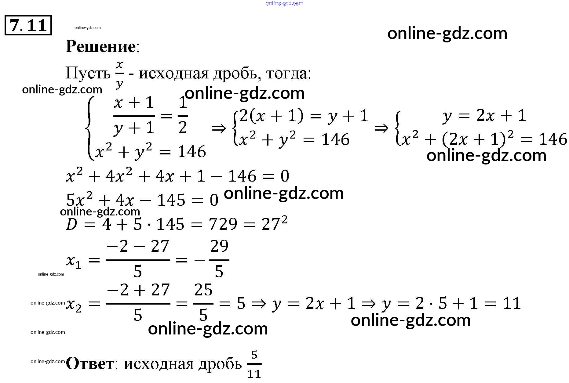 Готовые домашние задания по Алгебре за 9 класс Задачник Мордкович, Александрова 2010 - § 7. Системы уравнений как математические модели реальных ситуаций Глава 2. Системы уравнений 7.11