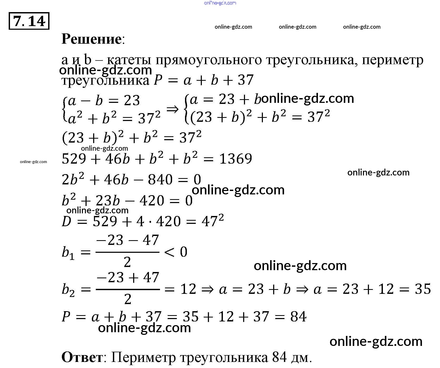 Готовые домашние задания по Алгебре за 9 класс Задачник Мордкович, Александрова 2010 - § 7. Системы уравнений как математические модели реальных ситуаций Глава 2. Системы уравнений 7.14