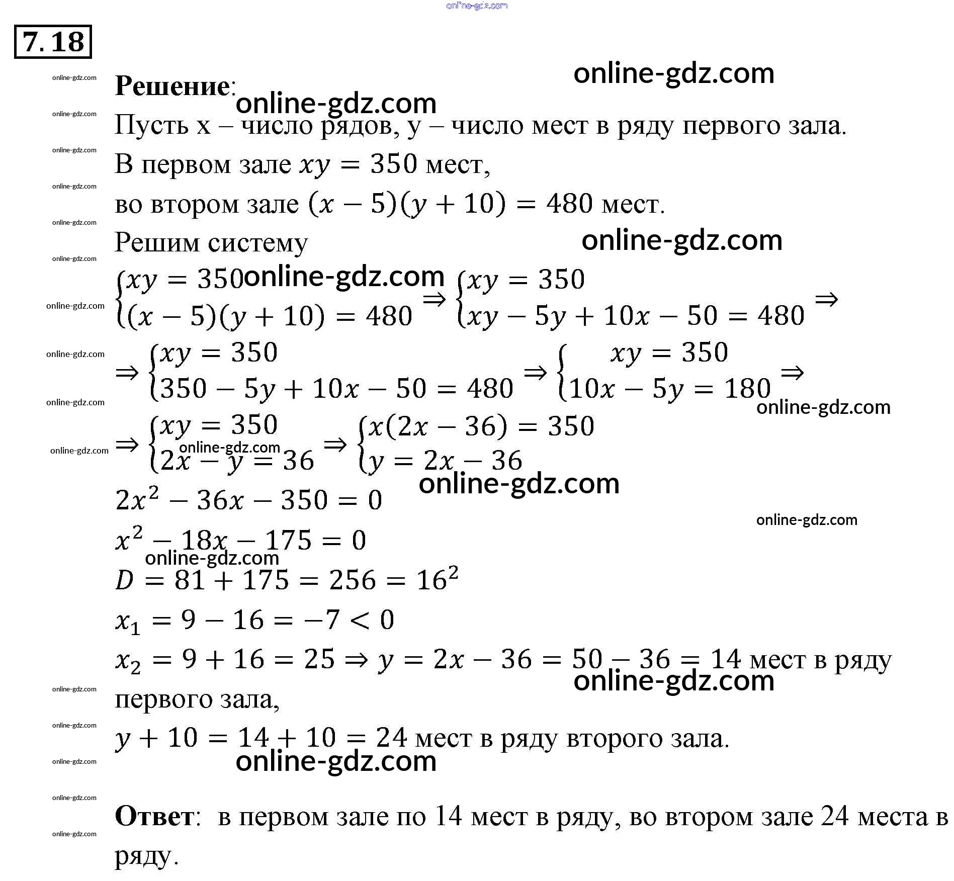 Готовые домашние задания по Алгебре за 9 класс Задачник Мордкович, Александрова 2010 - § 7. Системы уравнений как математические модели реальных ситуаций Глава 2. Системы уравнений 7.18