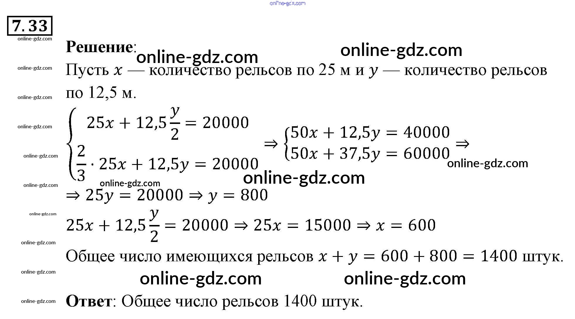 Готовые домашние задания по Алгебре за 9 класс Задачник Мордкович, Александрова 2010 - § 7. Системы уравнений как математические модели реальных ситуаций Глава 2. Системы уравнений 7.33