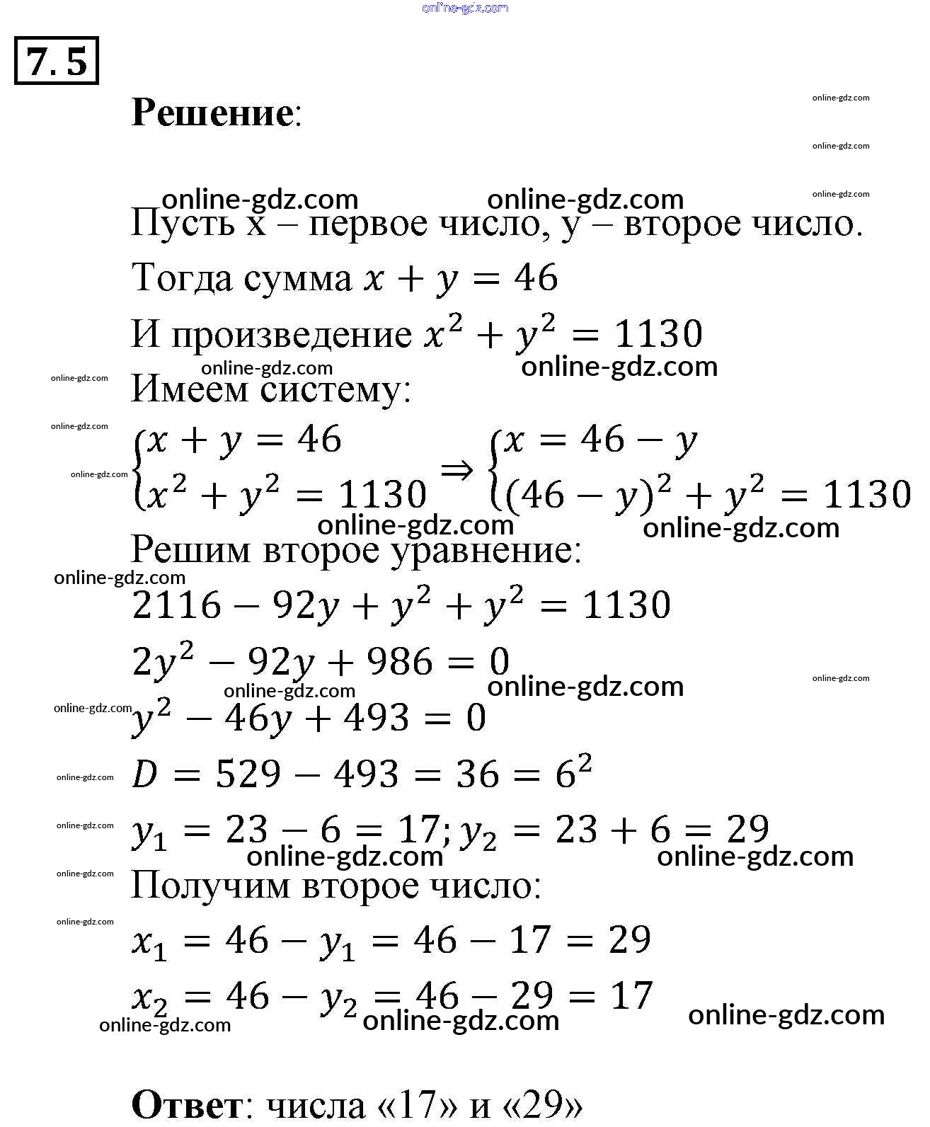Готовые домашние задания по Алгебре за 9 класс Задачник Мордкович, Александрова 2010 - § 7. Системы уравнений как математические модели реальных ситуаций Глава 2. Системы уравнений 7.5